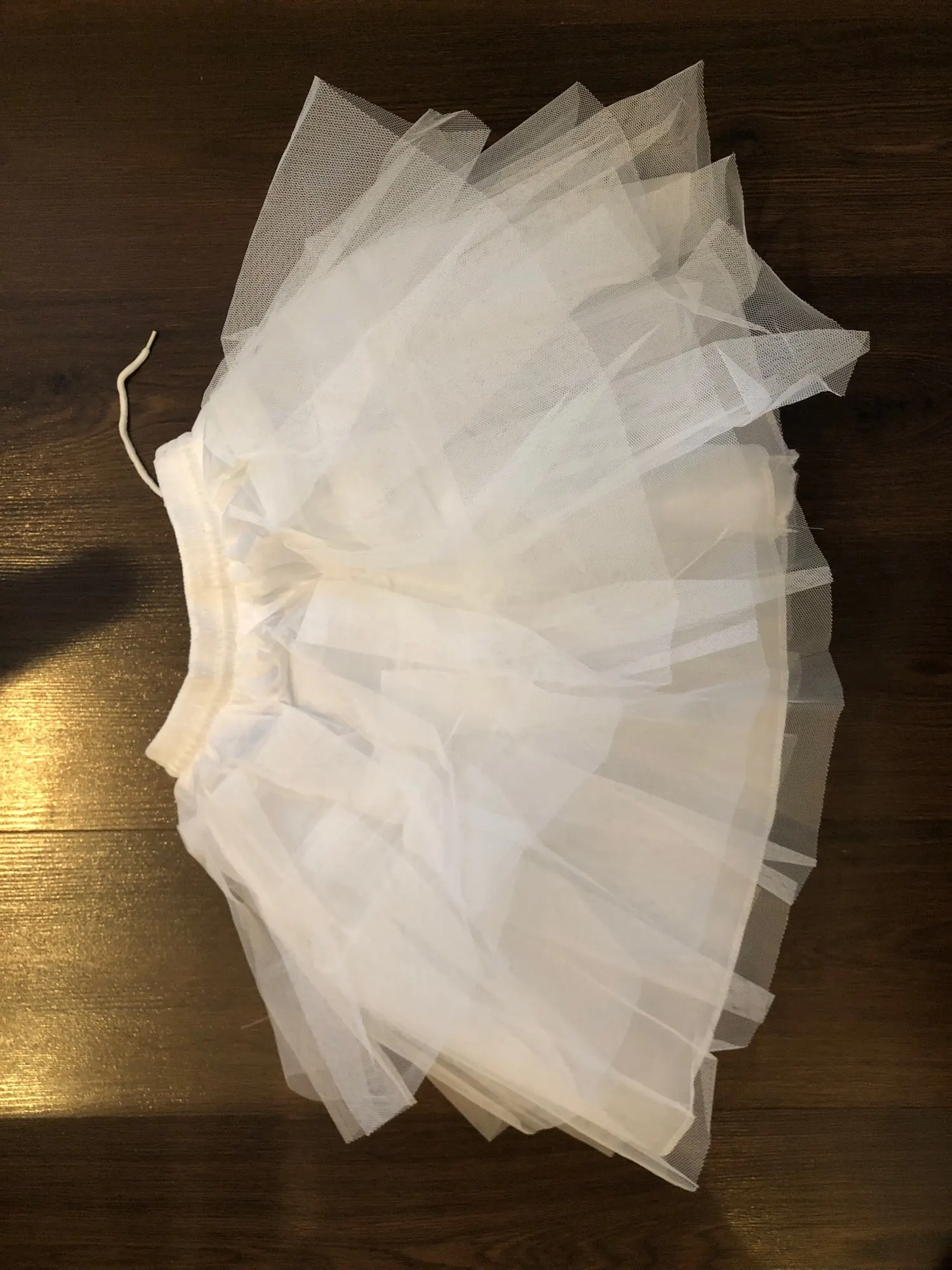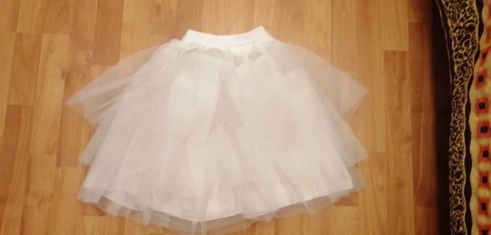 Заказывала 11.11, доставили в пункт выдачи 25.11, СПб. Брала для себя - S, сейчас бы взяла на размер побольше (р.42-44., рост 168 см). Фатин жесткий, юбка аж стоит. Края фатина на разном уровне, верхняя юбка лежит не очень аккуратно, но думаю, что подъюбник надо погладить, возможно будет лучше.