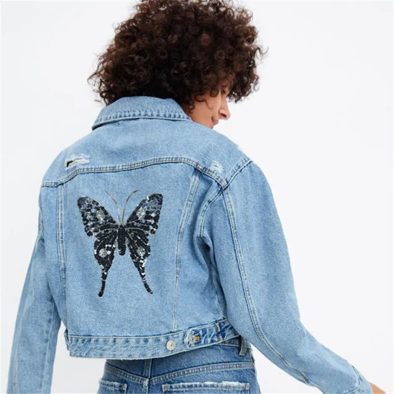 Футболка женская, с блестками, 31 см, с бабочкой, с байкерами, наклейки для одежды, 3d футболка, бесплатная доставка