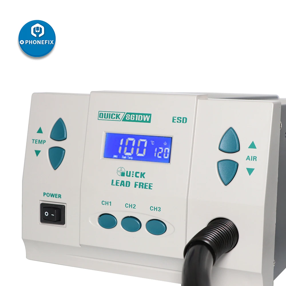 QUICK 861DW наладочная станция горячего воздуха-новая Бессвинцовая наладочная станция, 861DW наладочная станция для Мобильный телефон BGA отпайки ремонта, 1000 Вт/500 °C оригинальная наладочная станция горячего воздуха, с CH1, CH2, CH3 три рабочих канала