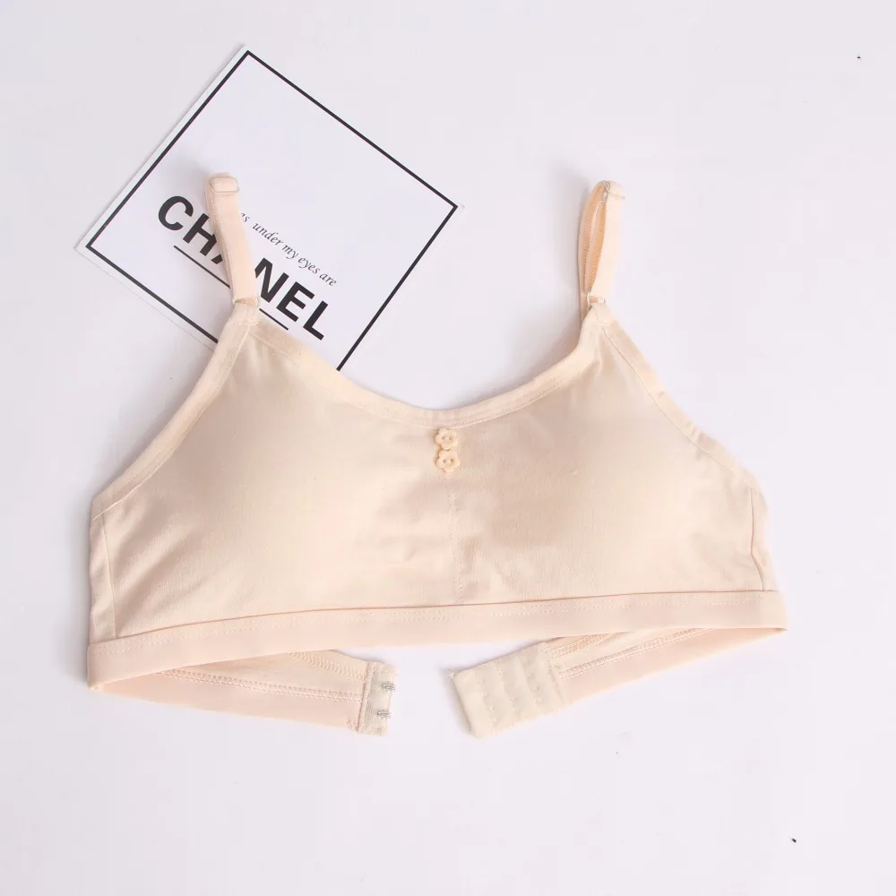 Однотонный хлопковый бюстгальтер для молодых девушек с двойной планкой милый бюстгальтер для молодых девушек без косточек тренировочный маленький дизайн жилета