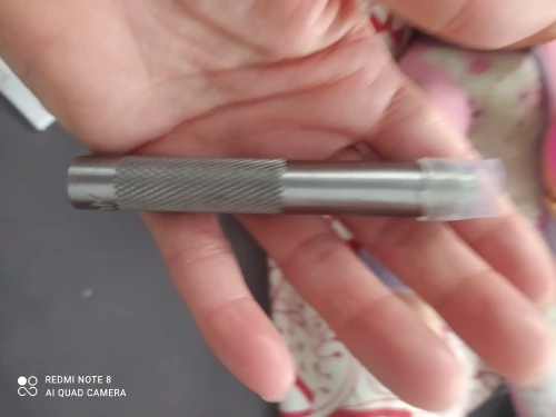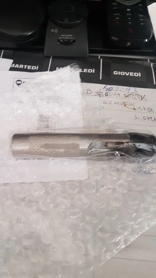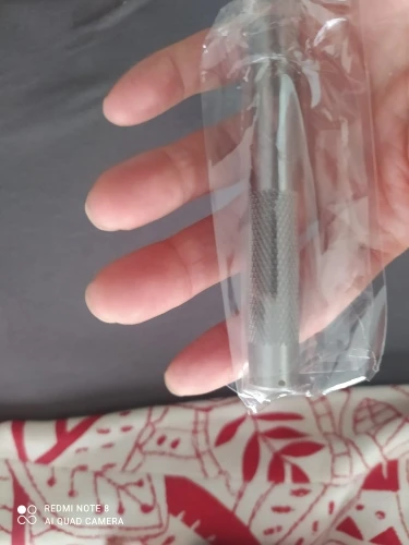 Доставка в Тюмень 13 дней. Упакован в мягкий пакетик с пупыркой, на остром конце силиконовый колпачок. Пробойник как описано. На режущей кромке одиночная замятина от удара каким-то лезвием.