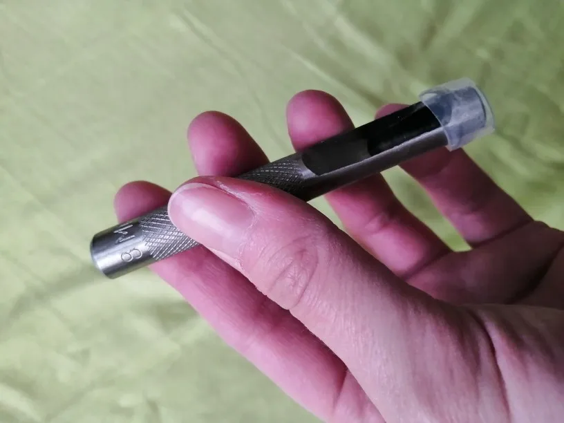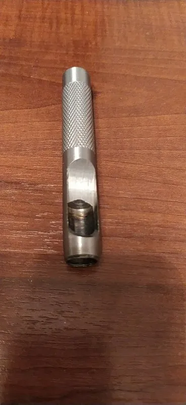 Дырокол не острый на кромке, который должен использоваться для дырокол, но другие края, которые не должны быть острыми. Он работает, если вы ударили его молотком достаточно сильно, хотя так он будет служить своей цели с некоторой тщательной обработкой.