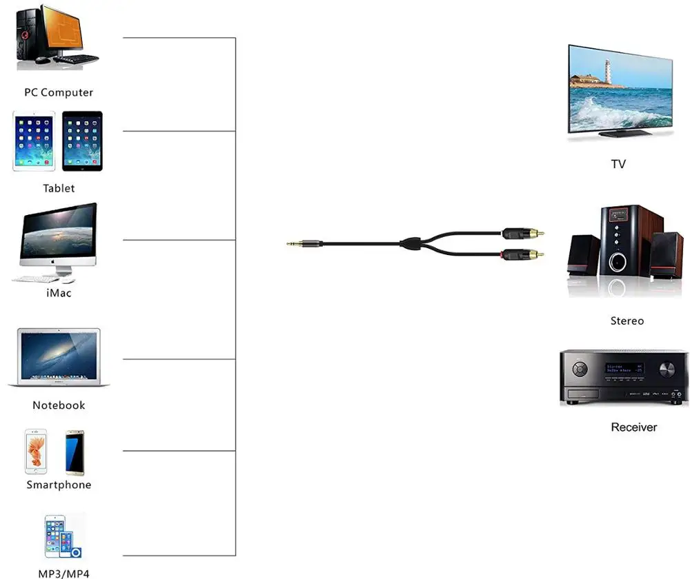 1. Аудиокабель RCA со штекером от 3,5 мм до 2 штекеров улучшает аудиосоединения; Идеально подходит для домашних развлечений и высокоточной (HiFi) системы