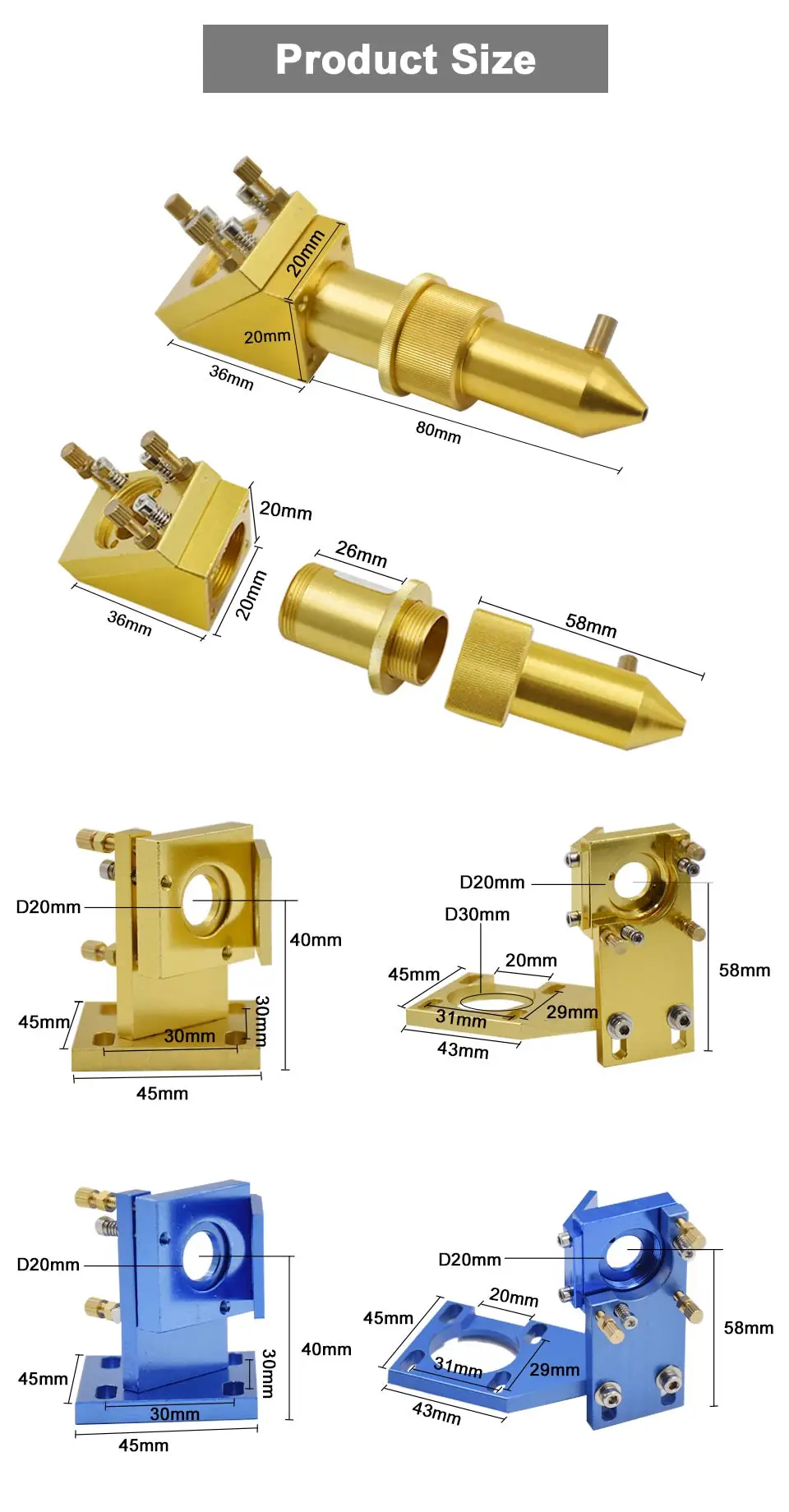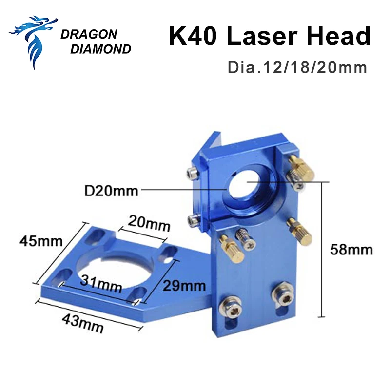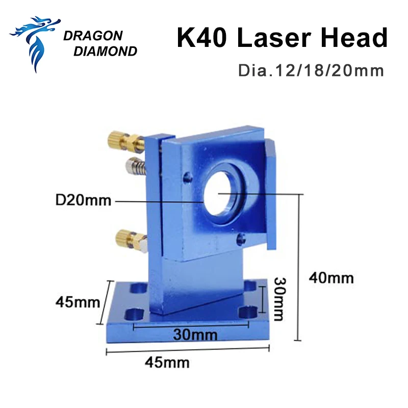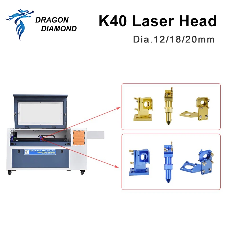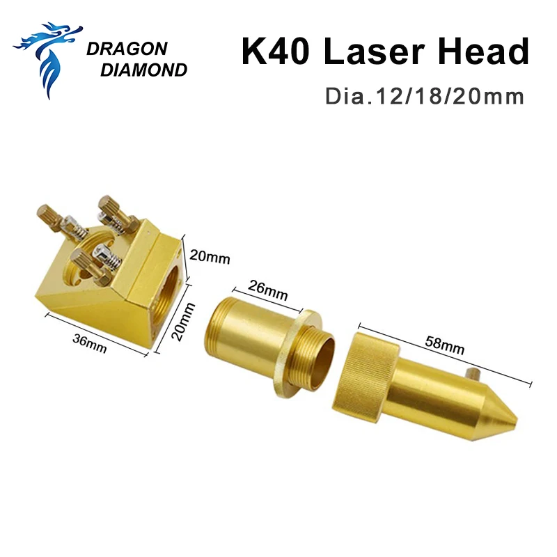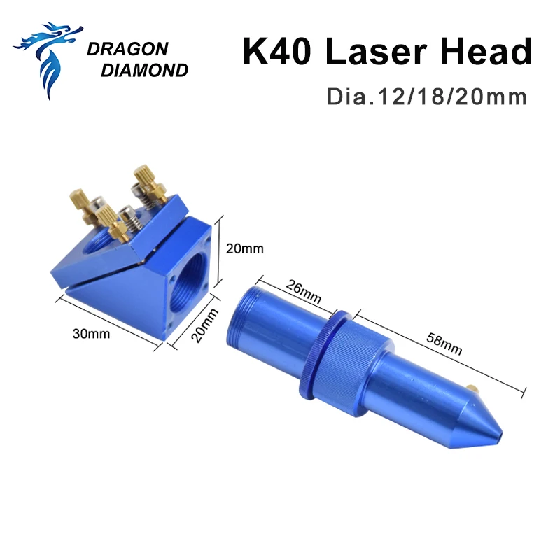 Серия K40: CO2 лазерная головка набор лазерный гравер Dia.12 мм 18 мм 20 мм FL 50,8 мм для 2030 4060 CO2 лазерный гравировальный станок для резки