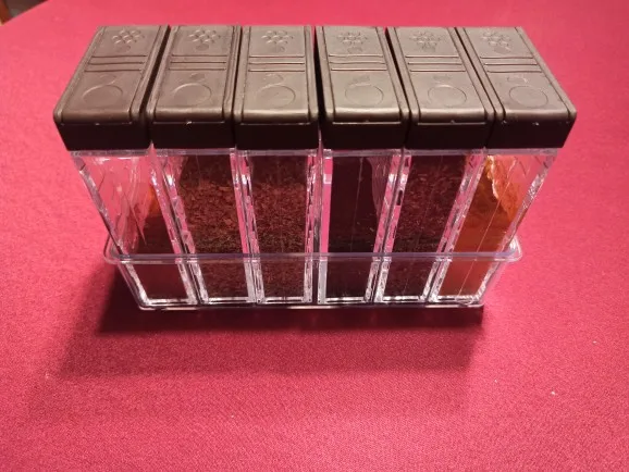 Товар соответствует описанию, но все коробки сломаны. Я связался с продавцом, и он договорился прислать мне еще один набор коробок для специй. Уважаю этого продавца, и я тепло рекомендую.