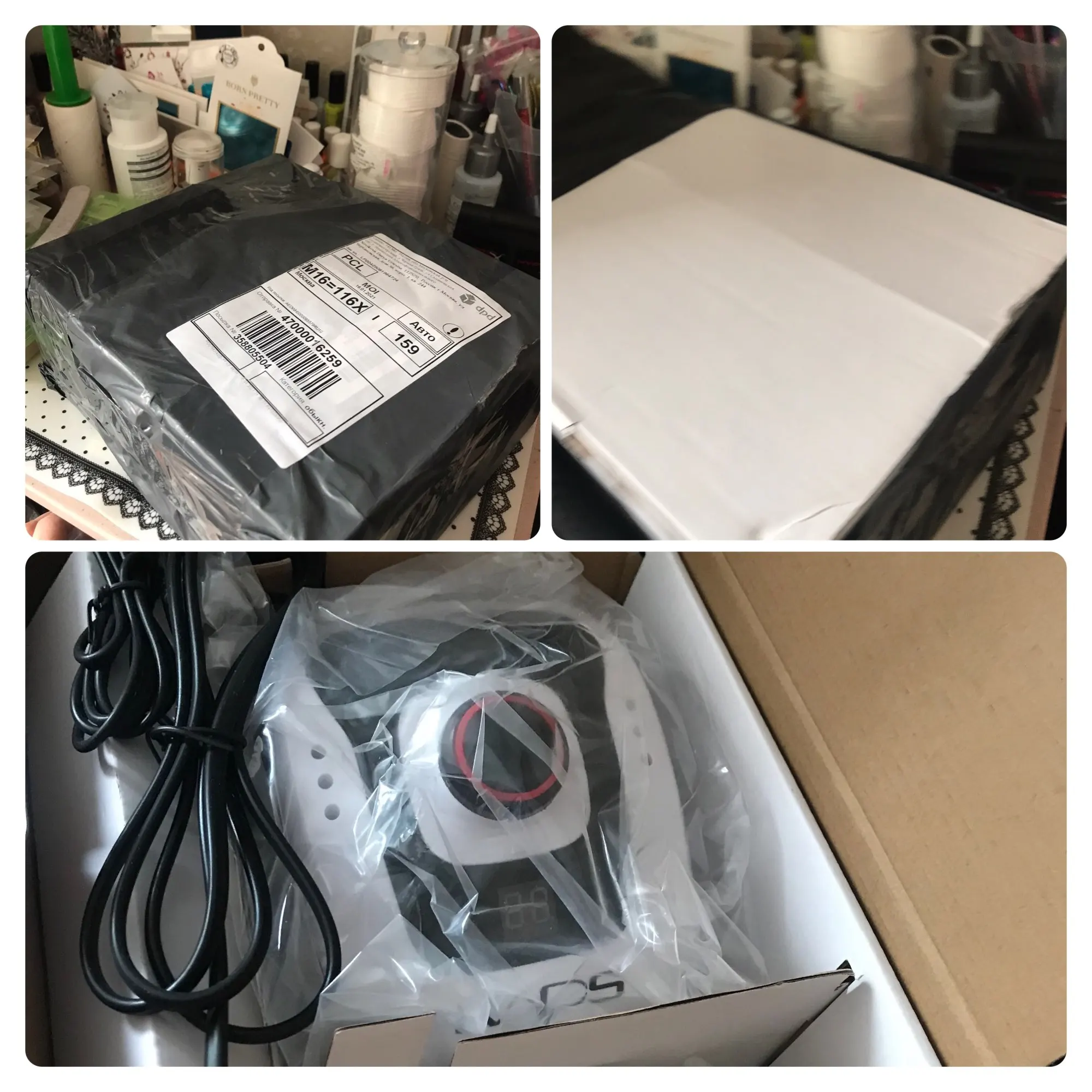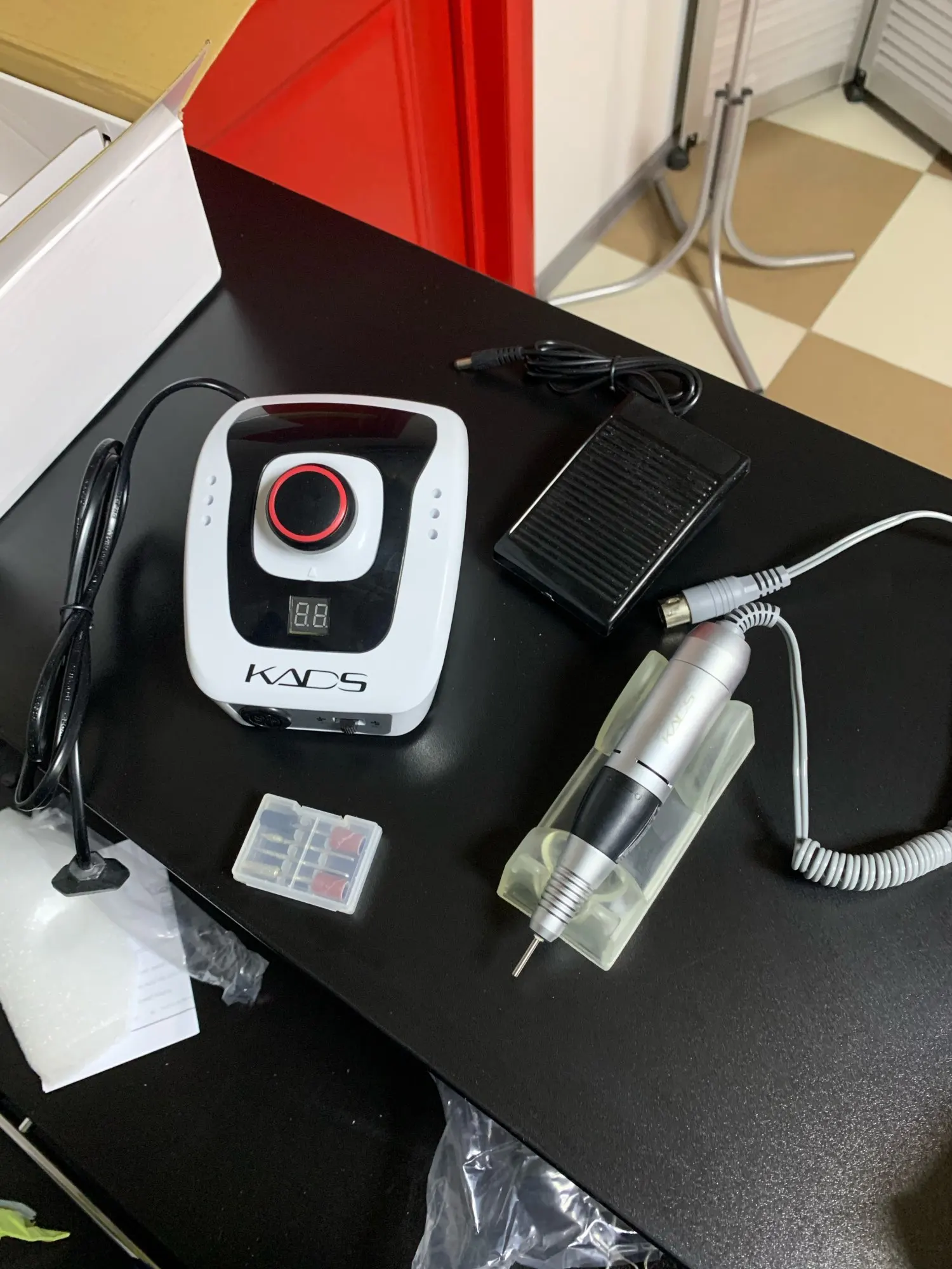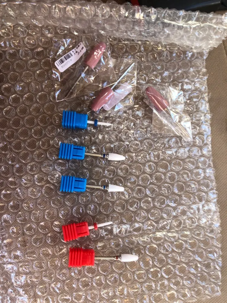 Курьер привез аппарат к дверям квартиры через день после заказа. Это самая быстрая доставка с Али! Был упакован в коробку, но не брендированную, все детали в пакетиках разложены, есть инструкция, но читать там нечего т.к. аппарат стандартный, у меня похожий уже был просто захотелось дисплей и оборотов побольше. В работе уже проверила, все ок. Из особенностей - удивила неожиданно тяжелая ручка и из нее слегка дует! В старом аппарате при полном внешнем сходстве ручка была легенькая и щели чисто декоративные. Теперь я понимаю что значит ручка с охлаждением. Фрезы у меня свои в ассортименте, но ради интереса попробовала пару тех, что прилагались к аппарату. На удивление оказались рабочими, по жесткости похожи на красную полоску.