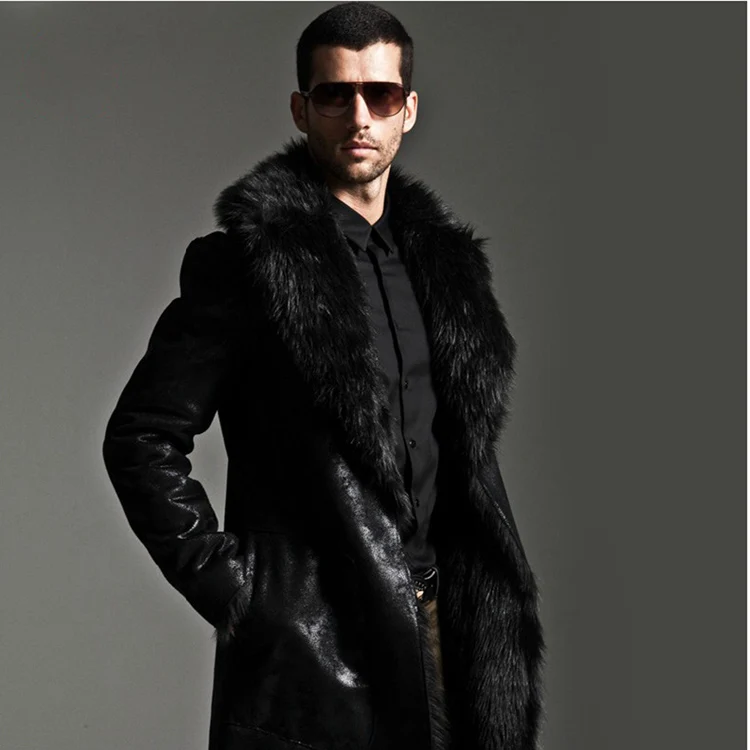 Куртка мужская двухсторонняя из искусственной кожи, повседневная приталенная длинная Экологически чистая ветровка, теплая верхняя одежда