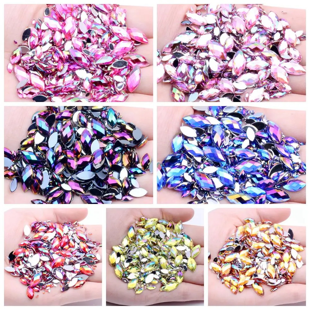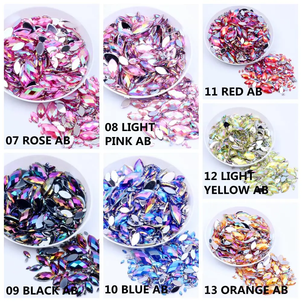 Акриловые плоские задние стразы, много размеров, много цветов AB, маркиза, грани, клей на одежде, скрапбукинге, DIY ювелирные ногти