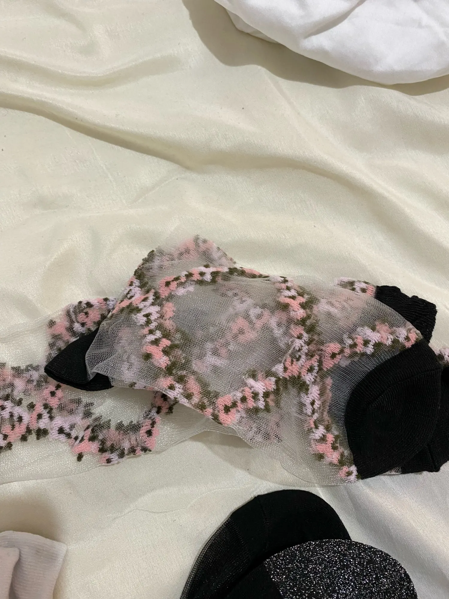 Носки женские кружевные в сеточку, тонкие прозрачные эластичные сетчатые, 1 пара = 2 шт., ws406