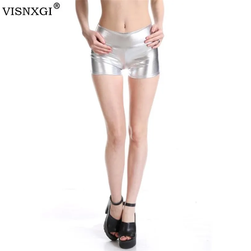Женские шорты для танцев VISNXGI, летние блестящие шорты из спандекса со средней талией, золотистогосеребристого цвета