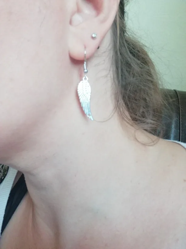 Сережки приехали супер быстро. Недели за две. Покупала на распродаже 11 ноября. Сережки легкие, в носке комфортные. Пока претензий нет. Поскольку у меня уши чувствительные, ношу только днём, заменяя на ночь золотыми серьгами.