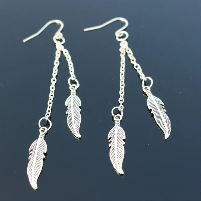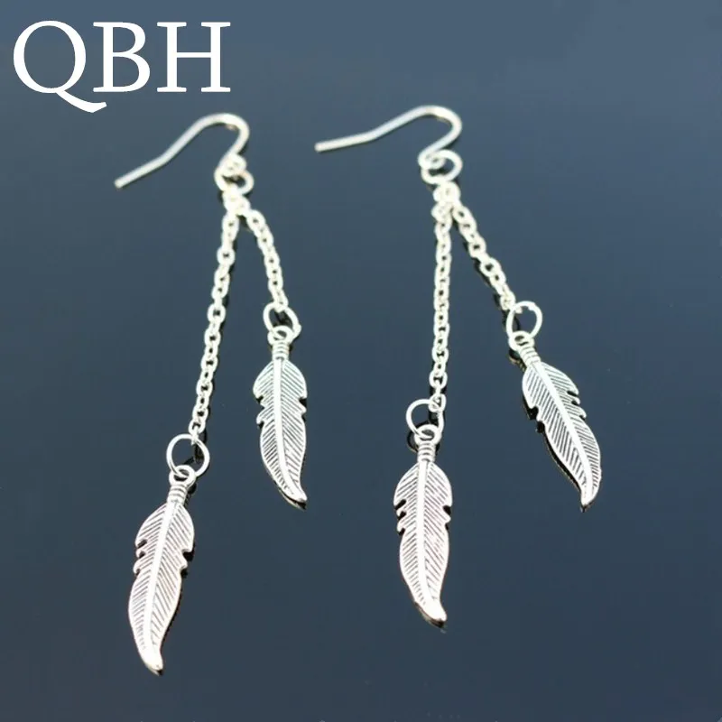 Женские серьги-подвески EK2020, в богемном стиле, с листьями, длинное перо-кисточка, сережки Brincos