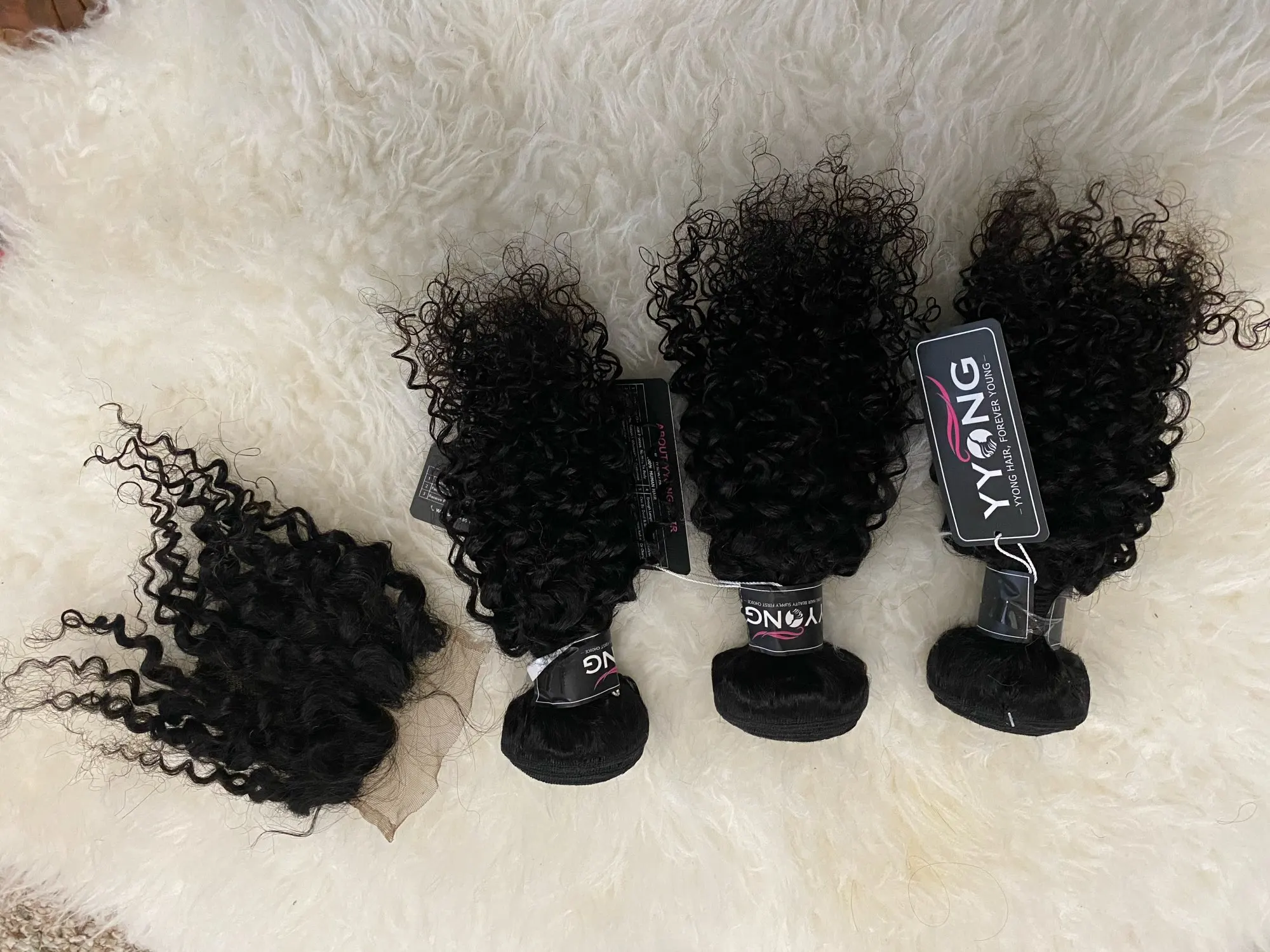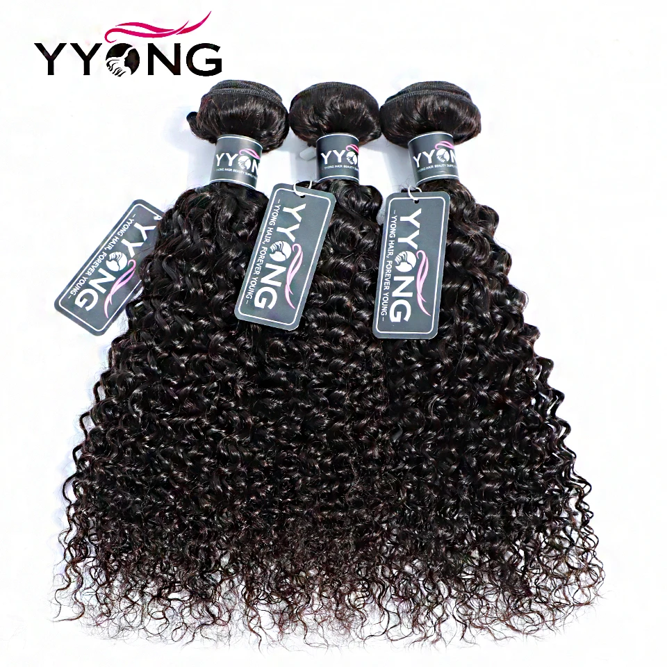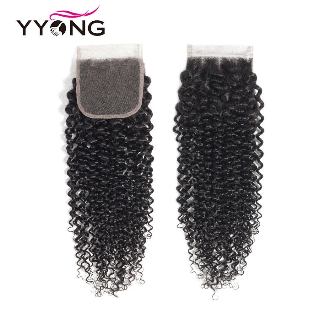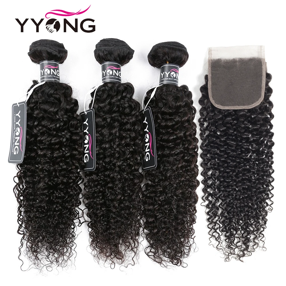 Yyong волосы бразильские кудрявые пряди закрытием 3 пряди человеческих волос с закрытием Remy волосы плетеные пряди закрытием