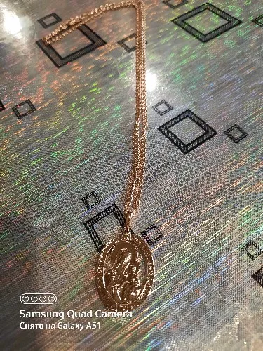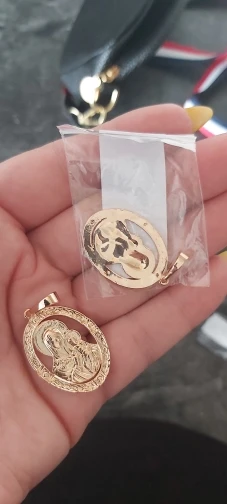 Иконка смотрится как золотая! Только я не ожидала что она будет такая большая! Но с золотой цепочкой смотрится очень дорого!