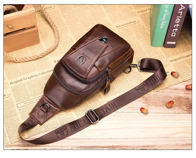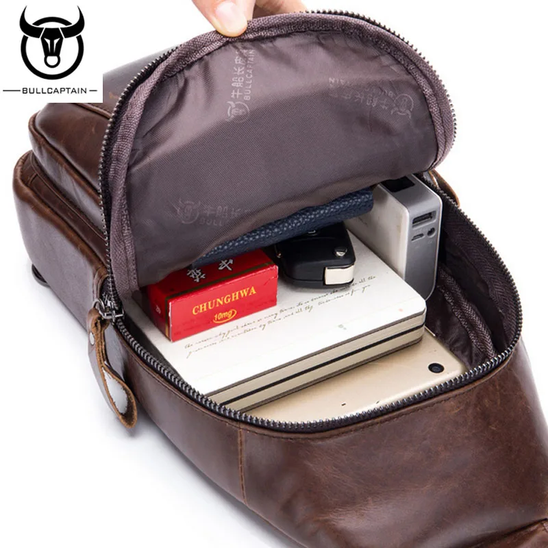 Нагрудная сумка BULLCAPTAIN из натуральной кожи, Мужская модная сумка-мессенджер, многофункциональная сумка для карт, мобильный телефон