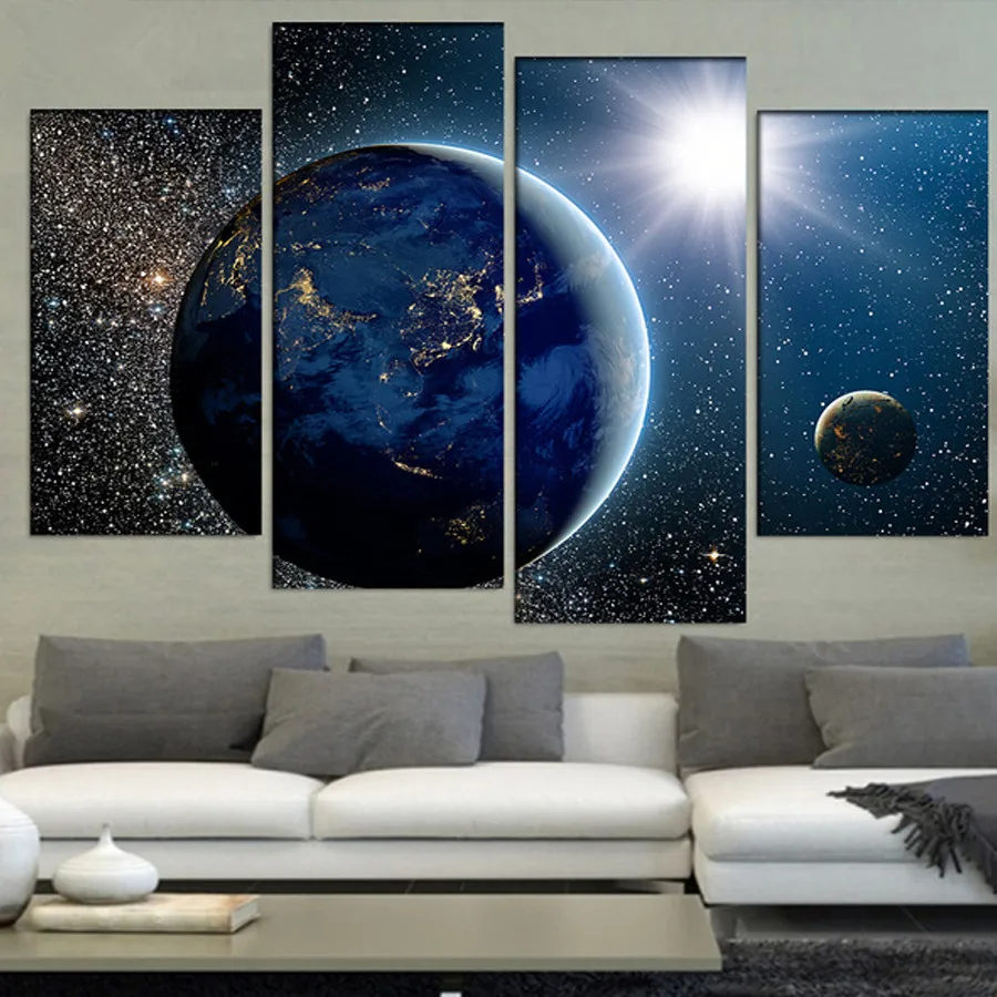 4 шт., картина daimond, полная вышивка крестиком, 3d картина, алмазная вышивка, вид земли, солнце, луна, Алмазная мозаика, Триптих, домашний декор