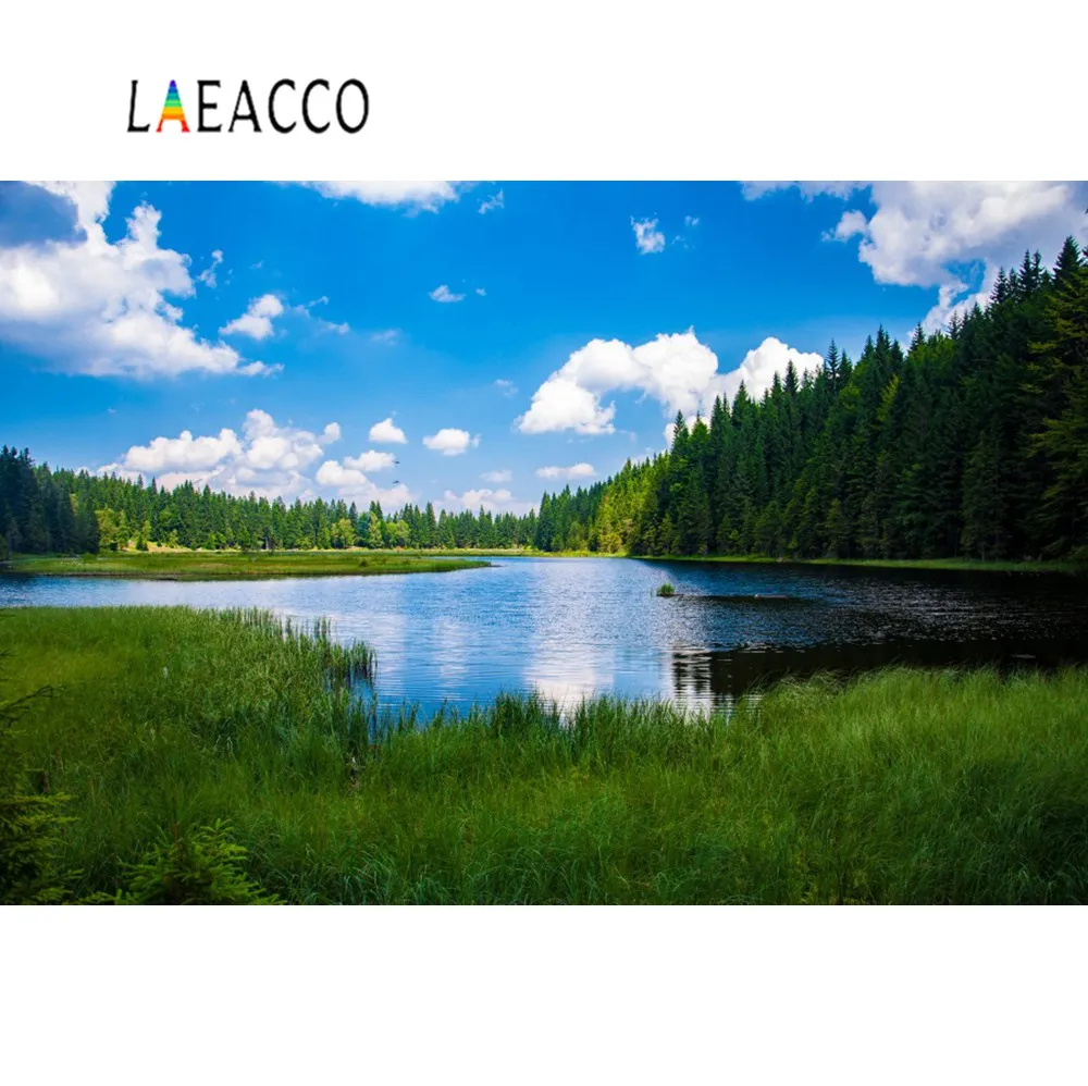 Фоны для фотостудии Laeacco, фоны для фотосъемки с природной зеленой травой, лесом, озером, голубым небом, областью, на открытом воздухе