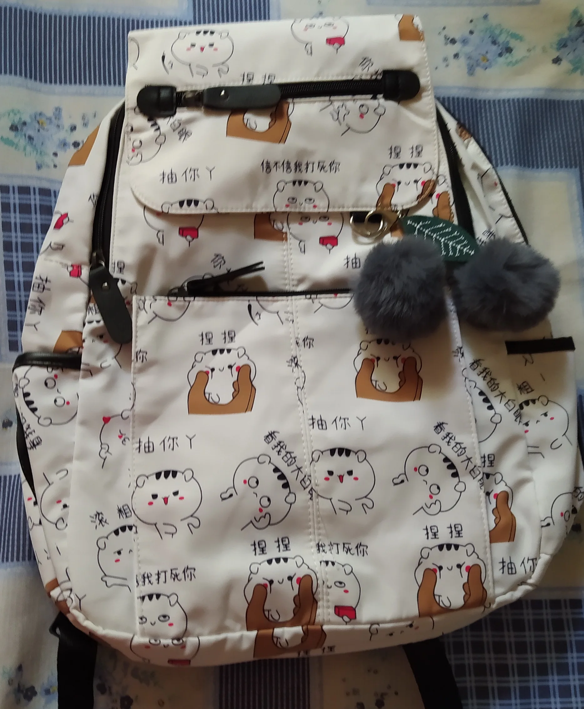 Отличный рюкзак, так и пришел с помпончтками. Дочь осталась довольна. Очень вместительный
