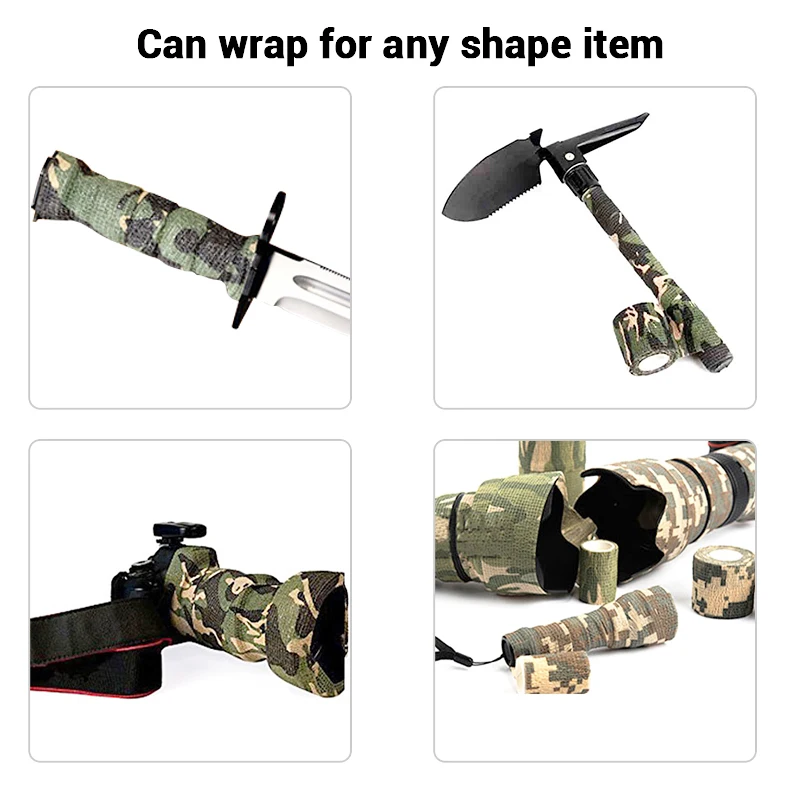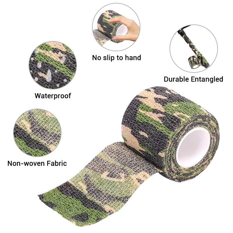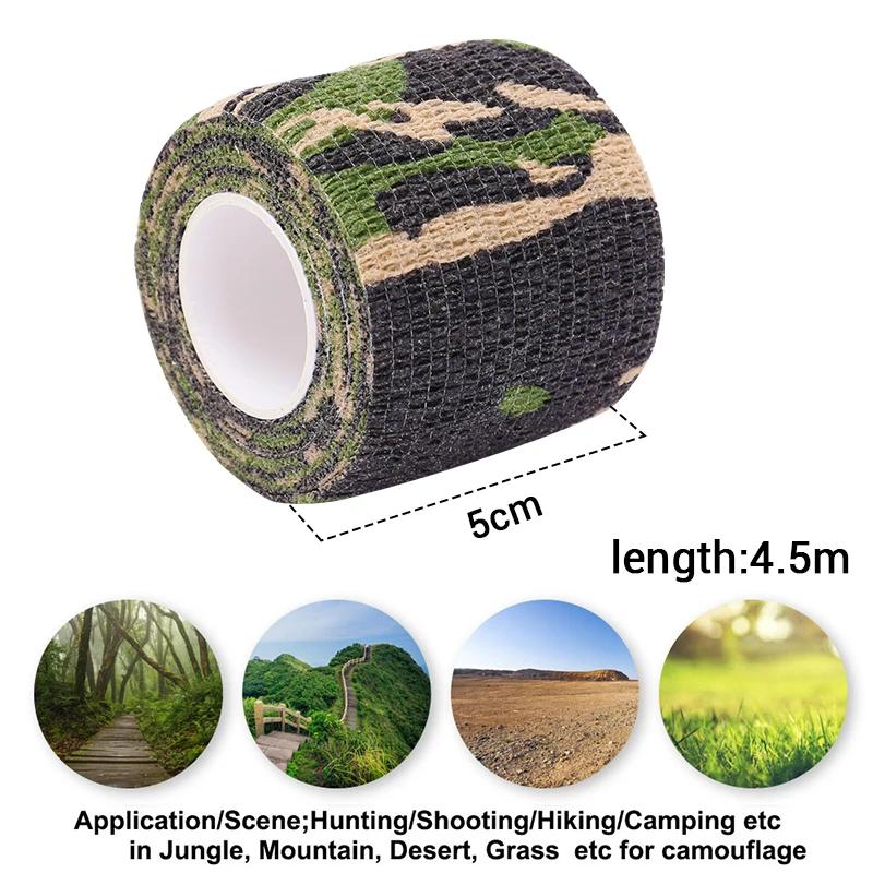 Тактическая Камуфляжная Лента для ружья, 5 см * 4, самоклеящаяся Камуфляжная Лента для охоты, улицы, инструмент, фонарик, эластичный бинт для обертывания