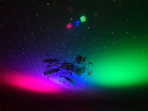 Качество света не очень хорошее, зеленые и синие светодиоды очень яркие, но красные светодиоды совсем не яркие. Очень сложно смешивать, например, желтый цвет, потому что красные светодиоды такие слабые, а зеленый-очень сильный. Другая проблема заключается в том, что диммер для красного цвета имеет всего 10 шагов, а при затемнении или медленном смене цвета яркость просто неприятно мигает. Диммер для зеленого и синего цвета работает нормально.