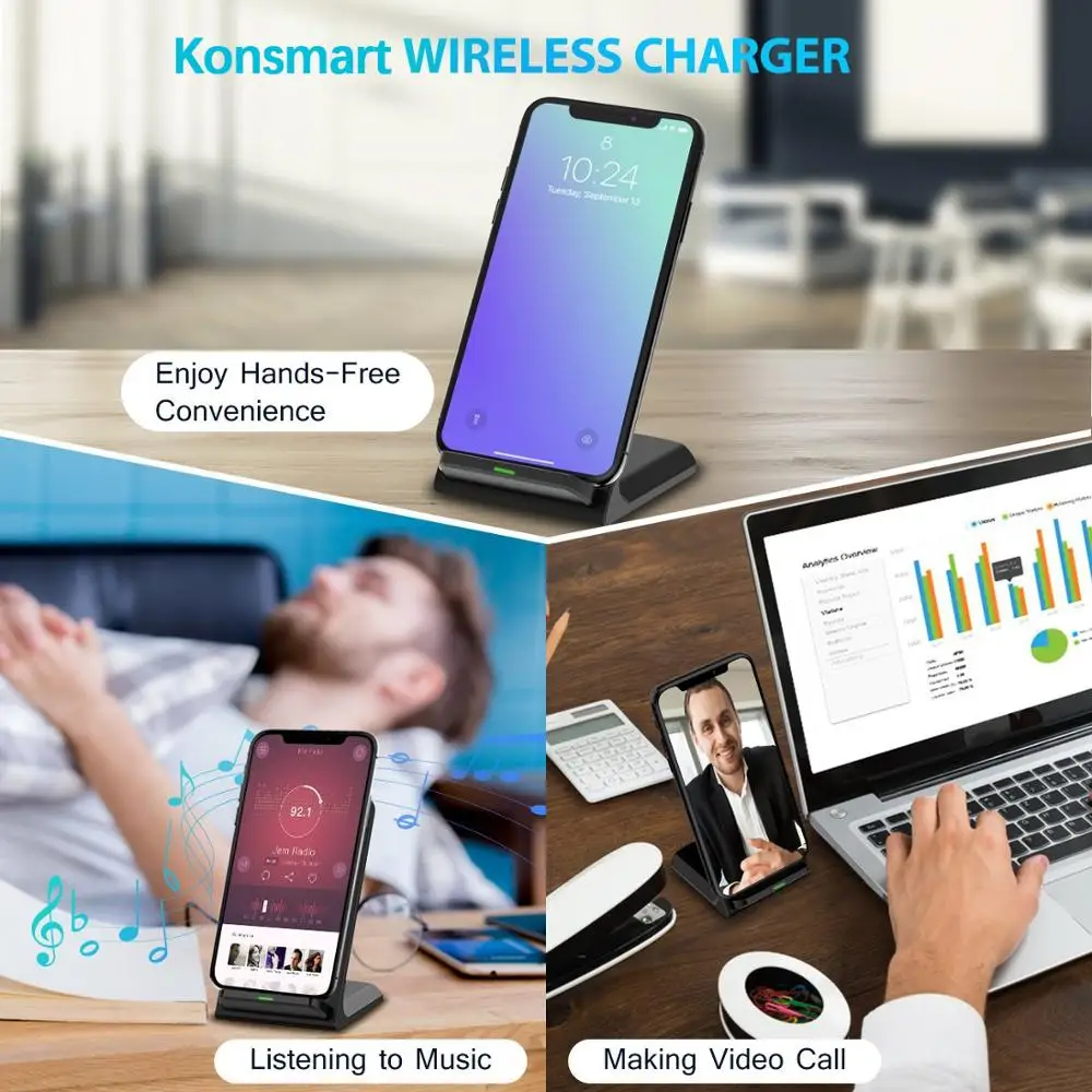 Brucebing 15 Вт Беспроводное зарядное устройство QC 3,0 Быстрая зарядка телефона док-станция для iPhone13 12 8 7 Samsung S20 S6 S7 S8 S10 Plus