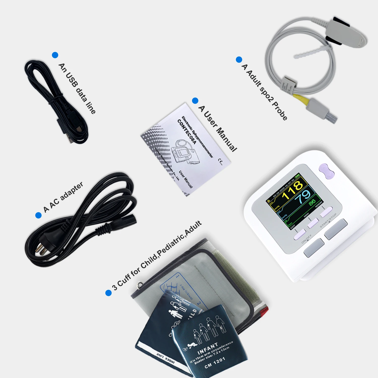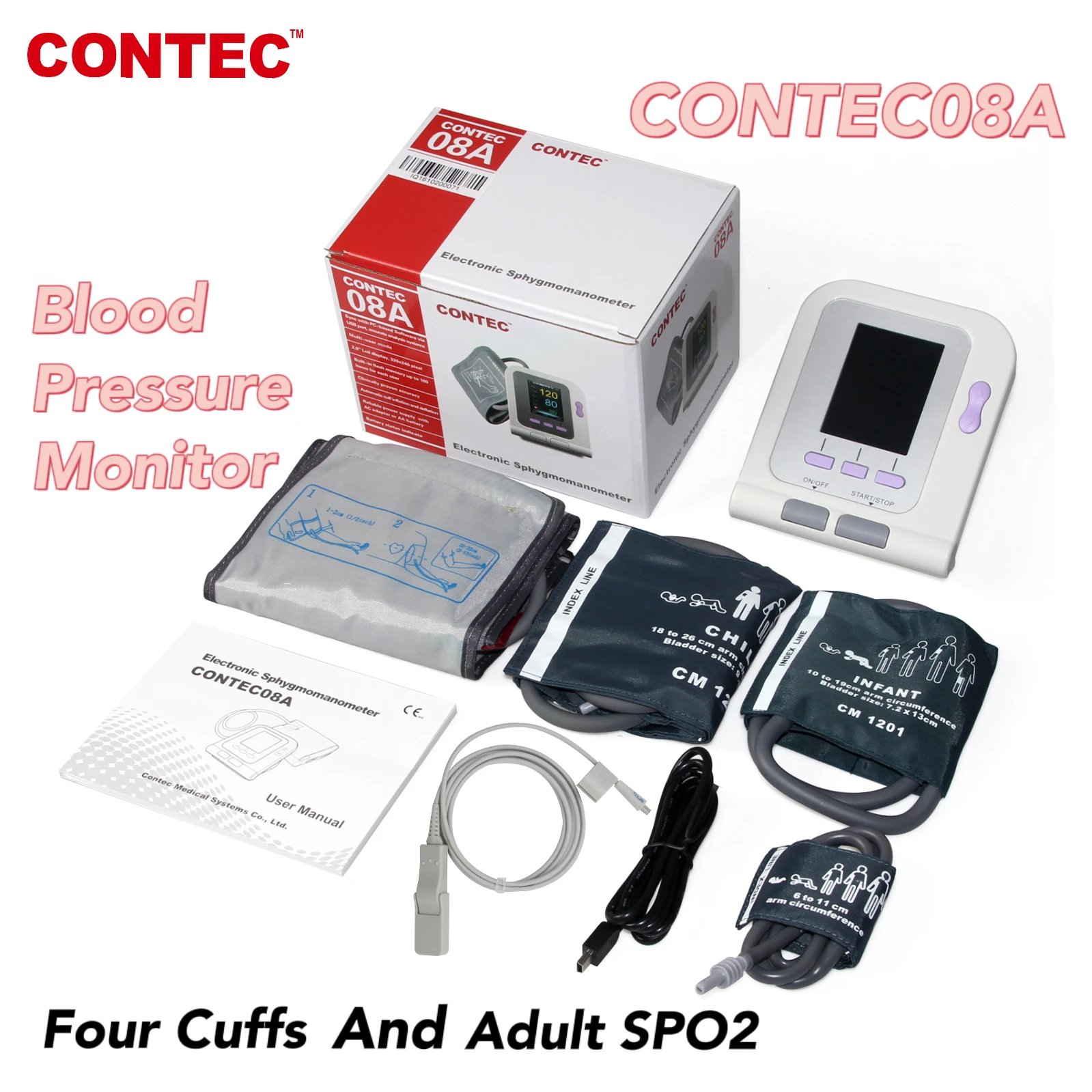 Цифровой монитор артериального давления CONTEC08A + взрослые манжеты для новорожденных педиатрические манжеты Детские манжеты бесплатно SW + Spo2 взрослый зонд