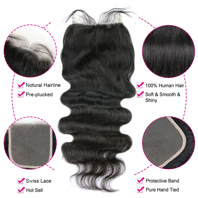 Объемная волна Кружева Закрытие 10-20 дюймов бразильские 4x4 и 5x5 и 6x6 Кружева Закрытие предварительно высеченные необработанные человеческие волосы для наращивания