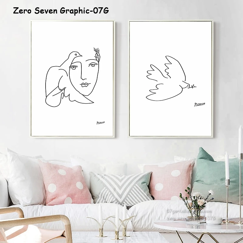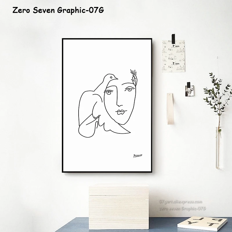 Пикассо голубь мира абстрактная черно-белая линия художественная живопись холст печать плакат картина стены гостиной домашний декор