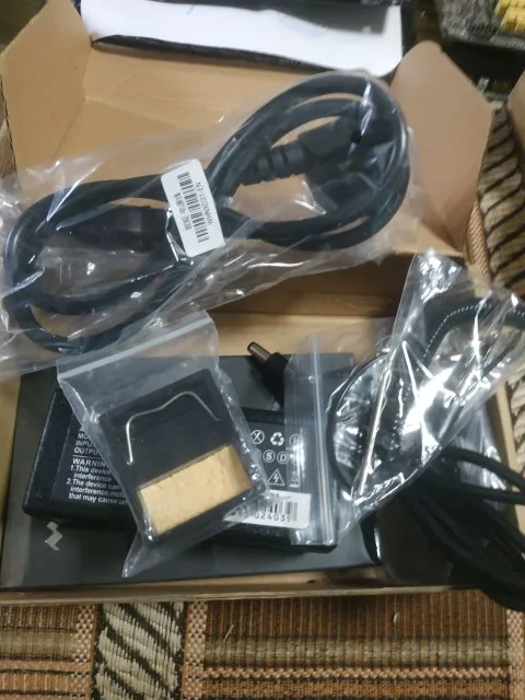 Очень быстрая доставка в постомат пятёрочки. Коробка немного помятая. Внутри всё целое. Какой же паяльник всё-таки небольшой, когда смотрел обзоры он казался больше. Очень понравился шнур от блока питания к паяльнику очень гибкий. Ещё осталось обновить прошивку на русский язык и будет полный феншуй))))) Продавца и товар рекомендую!