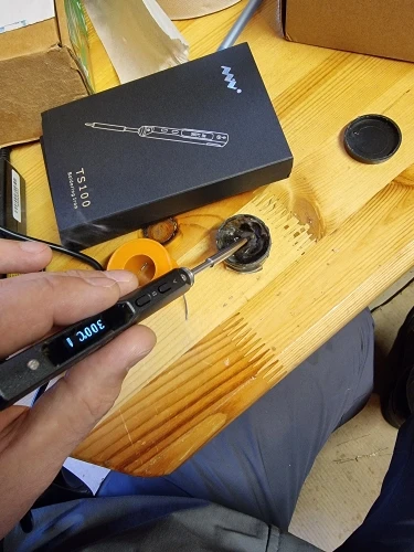 Приехал достаточно быстро. Паяльник работает, без проблем перепрошил на русский язык. Разогревается секунд за 12-14. Приятно удивил провод от блока питания - мягкий(силиконовый чтоли, не знаю) и не мешает при пайки.