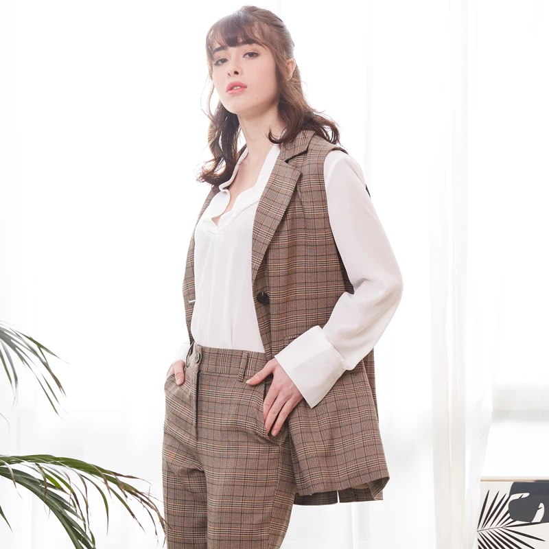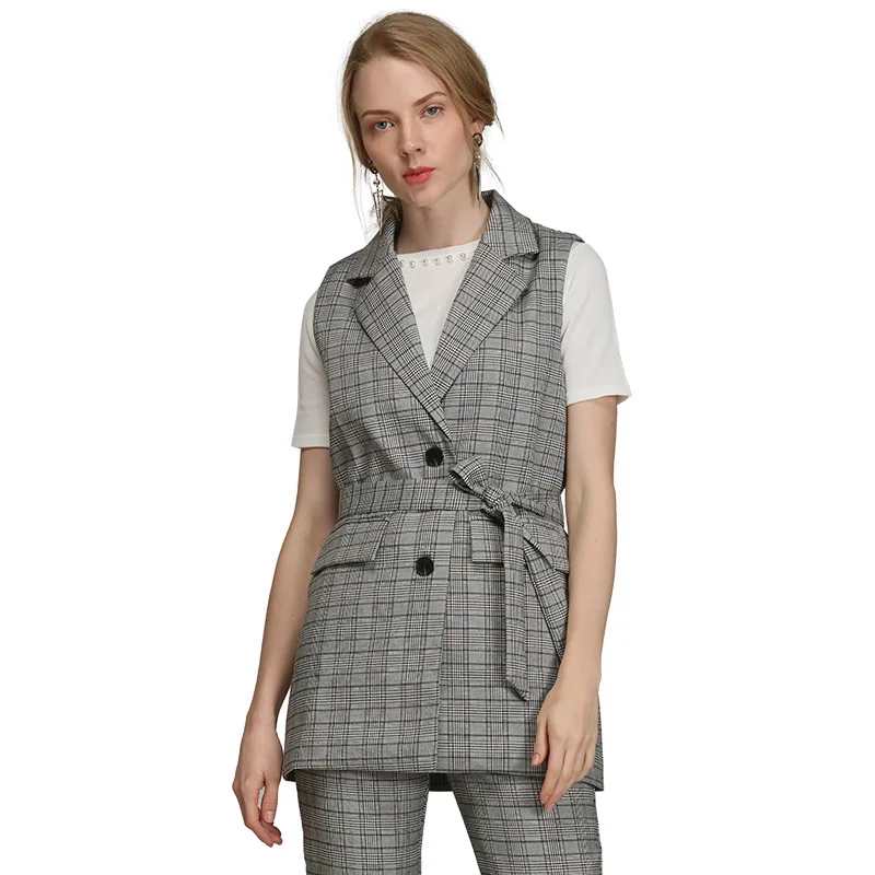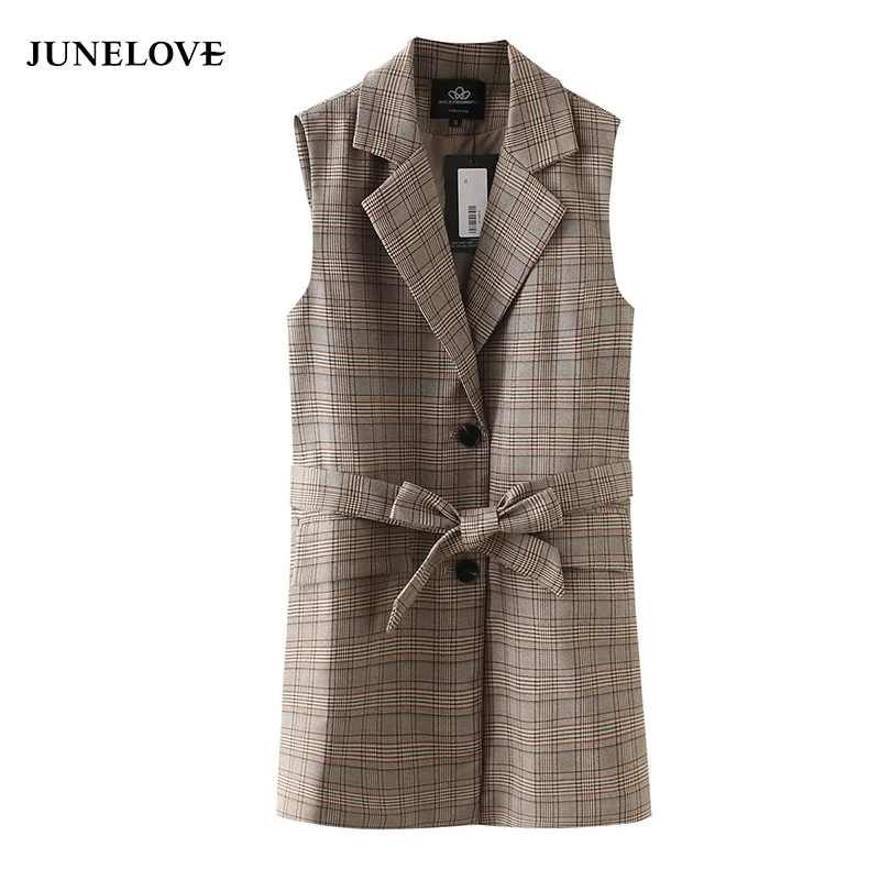 Женский блейзер в клетку JuneLove, повседневный однобортный жилет без рукавов, с карманами, весна 2020