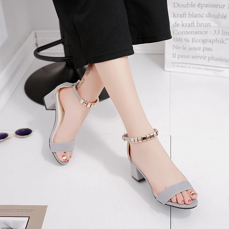 Сандалии женские с открытым носком, босоножки на квадратном каблуке, с металлическим ремешком, бусины, гладиаторы в Корейском стиле, m668, лето