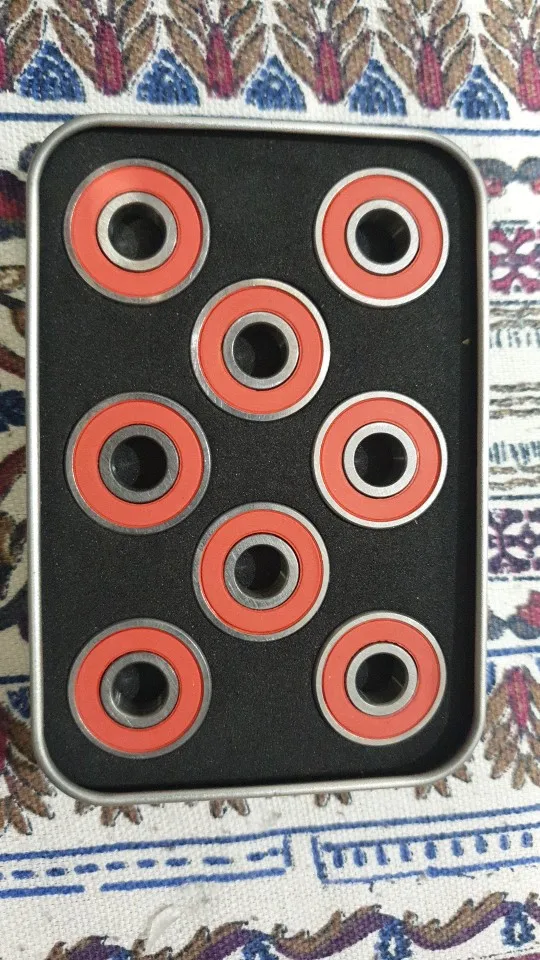Отличные подшипники! Попросили друга проверить материал и на самом деле. Даже думал, что это может быть любой металлический сплав, но был удивлен. Беги тоже, есть немного, но я думаю, что красиво. Чехлы снимаются с обеих сторон. Просто помните, что каждая коробка поставляется 8. Рекомендую.