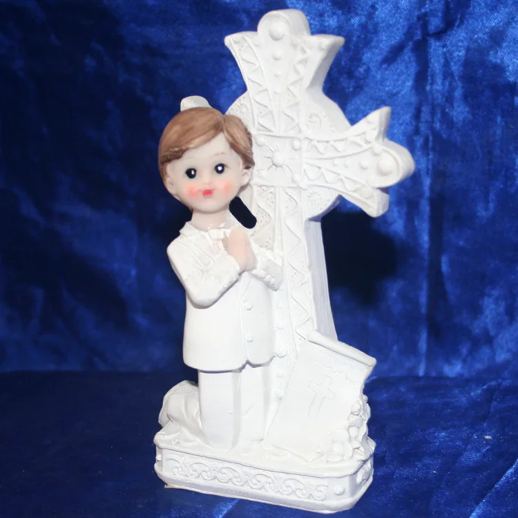 Христианская кормушка ручной работы крест молитва Ангел мальчик и девочка ангелы Статуэтка из смолы подарок Христову Статуэтка Свадебный подарок