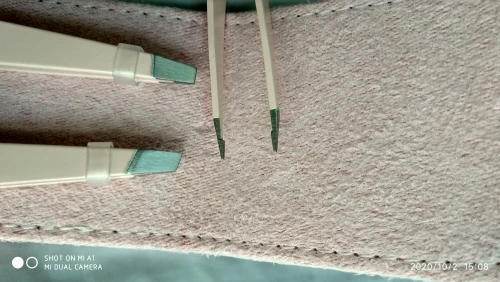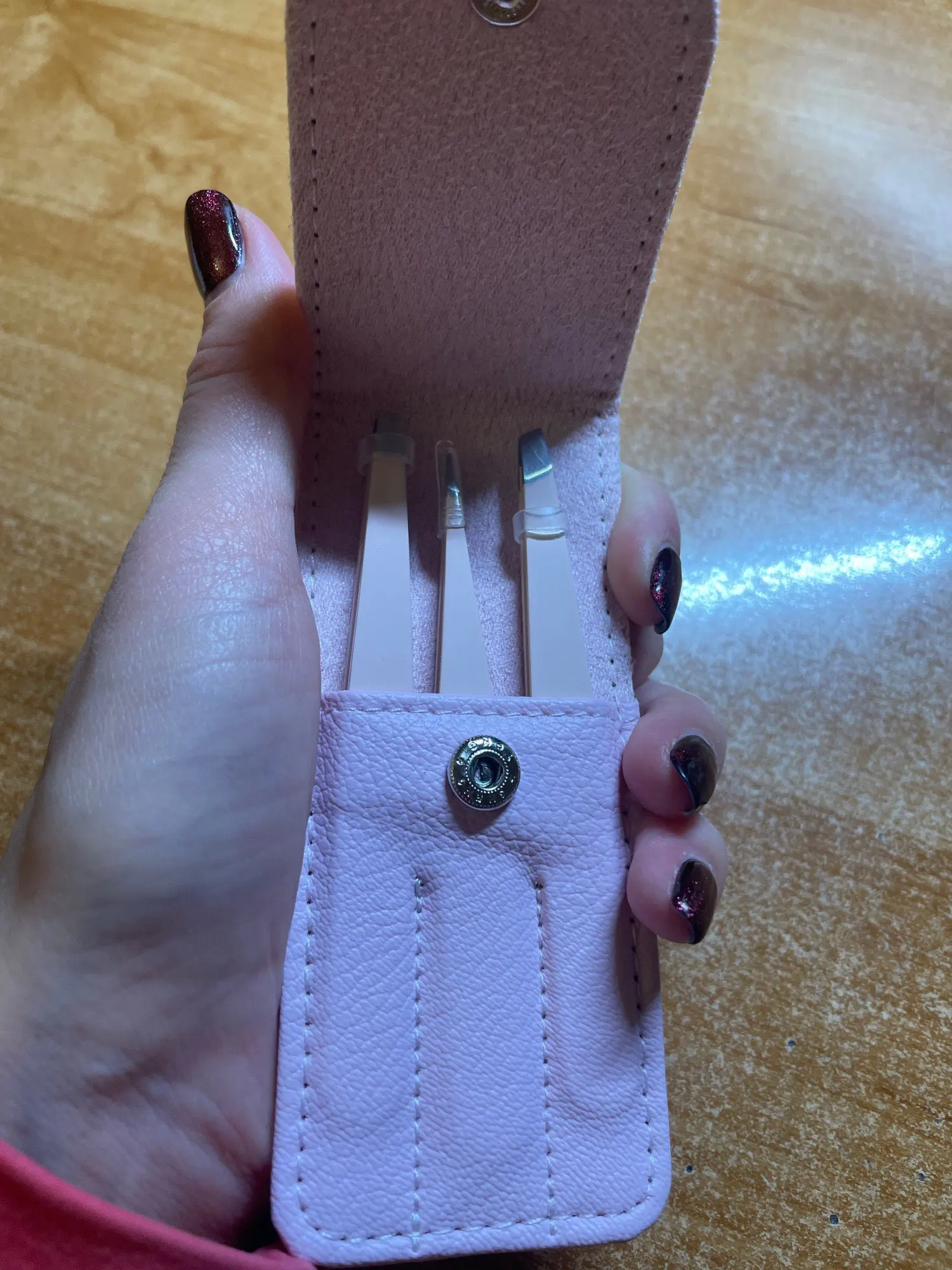 Немного топорно пошит чехол. Нитки в одном углу порваны в нескольких местах. Кое-где на пинцетах слезла розовая краска. В работе норм, но лучше купите себе профессиональные.
