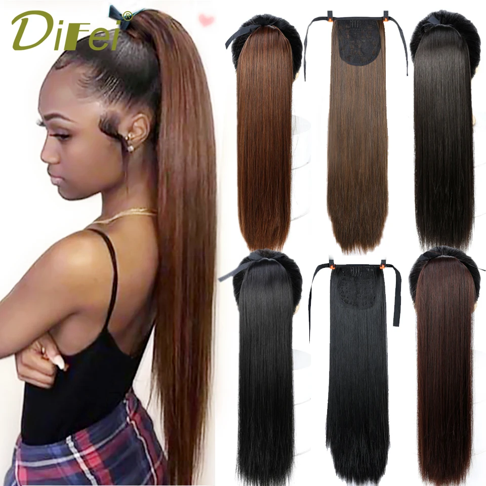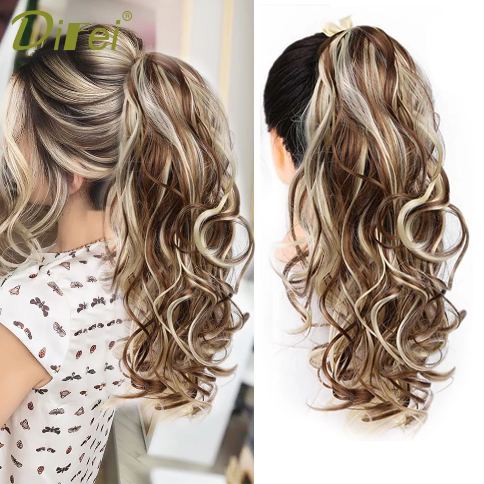 DIFEI длинный волнистый хвост с зажимом, накладные волосы, хвост для конского хвоста со шпильками, синтетические волосы, золотойкоричневый головной убор
