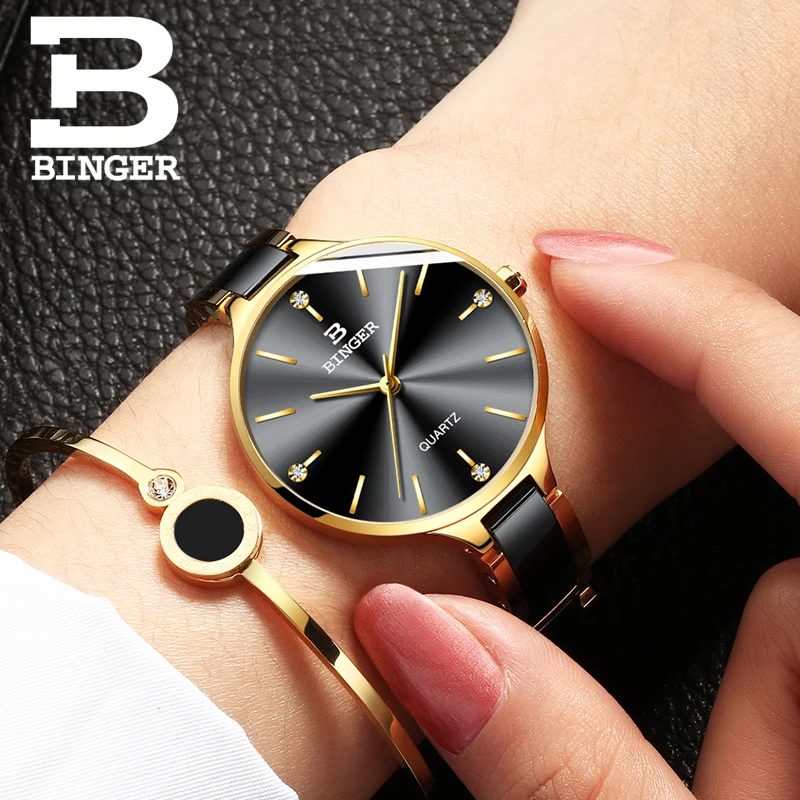 Керамические кварцевые часы Binger, женские модные часы класса люкс, водонепроницаемые