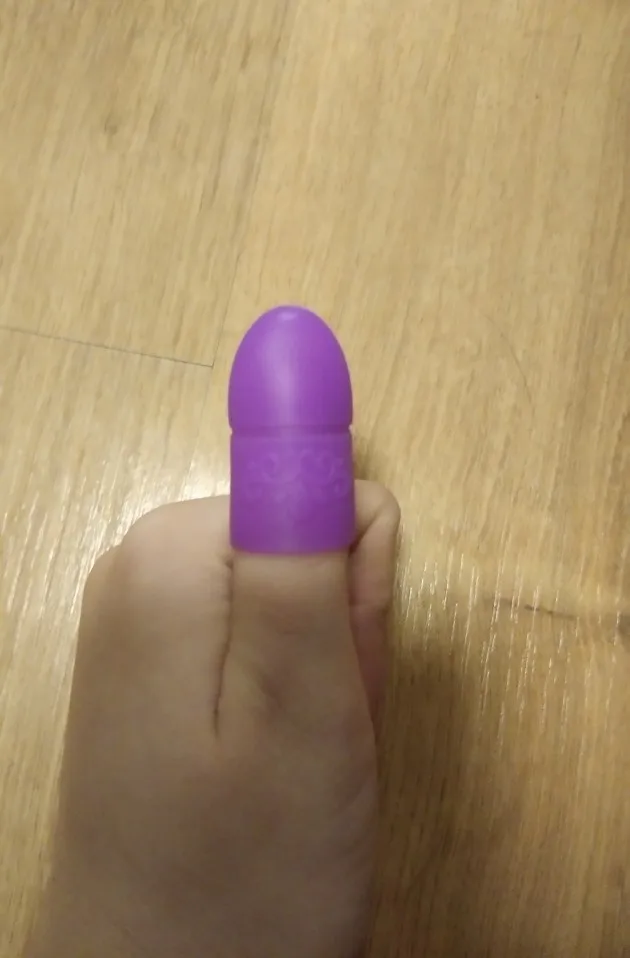 Колпачок хорошо наделся на мизинец, на большой палец не лезет, ну можно впихнуться с трудом (у меня размер перчаток 7,5), надеюсь смогу пользоваться на все пальцы. Отправили быстро, заказала 30 декабря, пришли 22 января на почту.