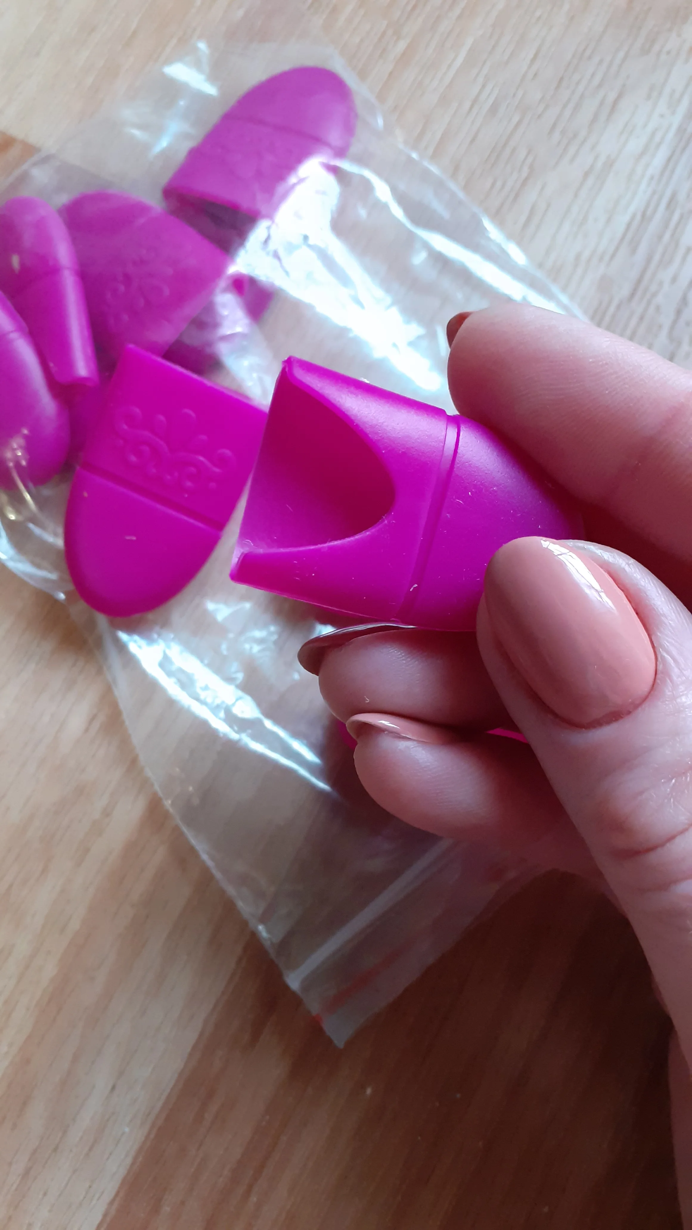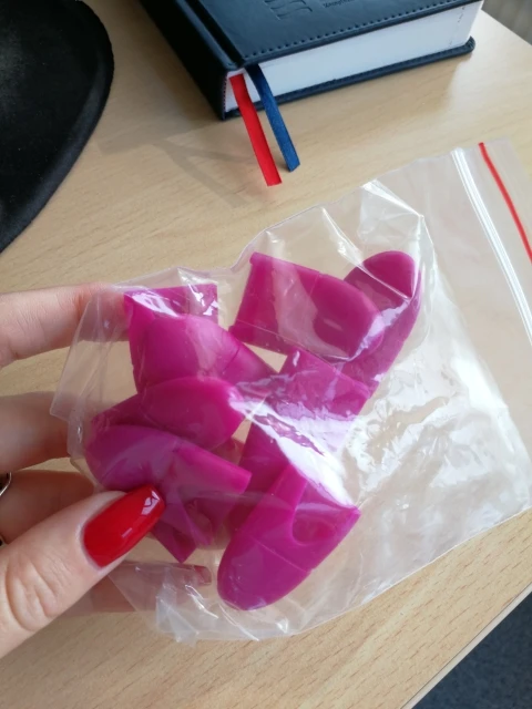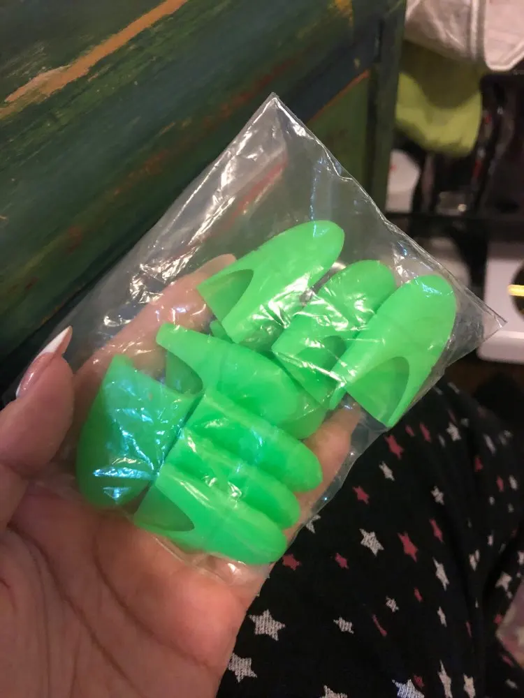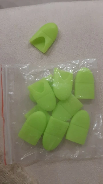 Хорошие мягкие колпачки. Не знаю, подойдут ли на большие пальцы, на моих тонких сидят плотно. Возможно, за счет выреза сзади подойдут и на более большие. самые недорогие, что удалось найти. Дошли за 2 недели в составе объединенной посылки на кассу пятерочки.