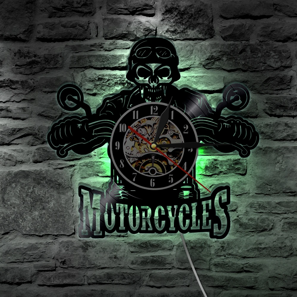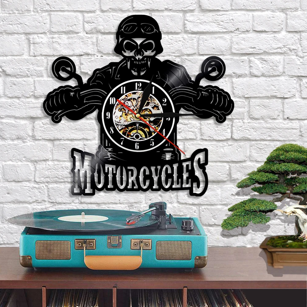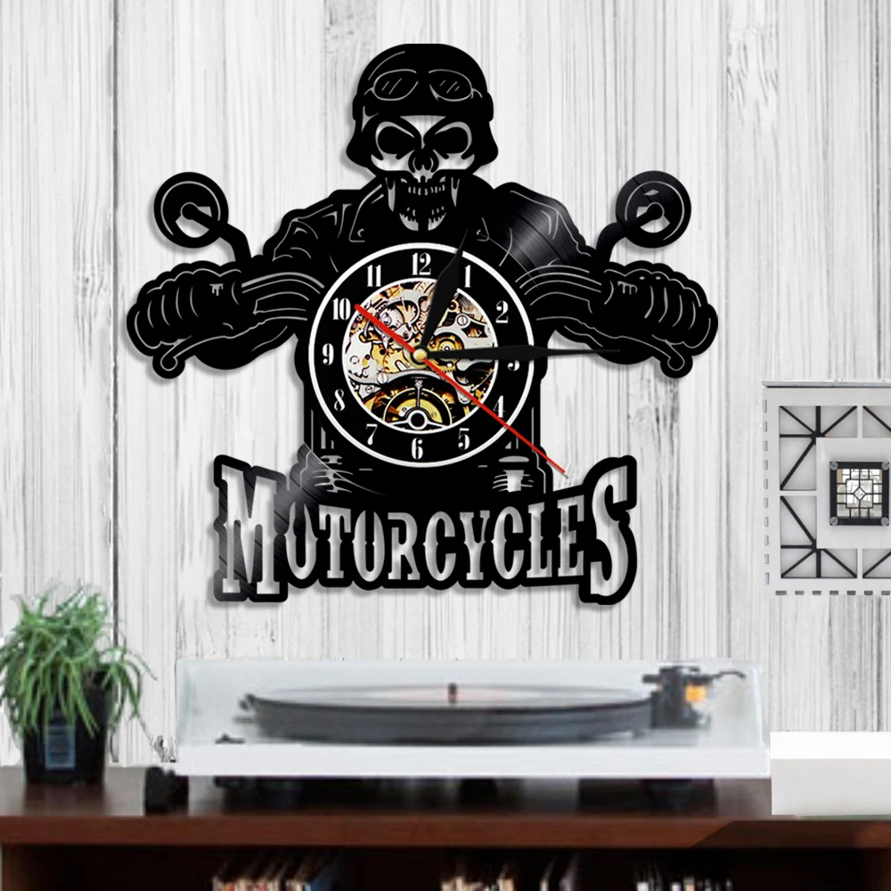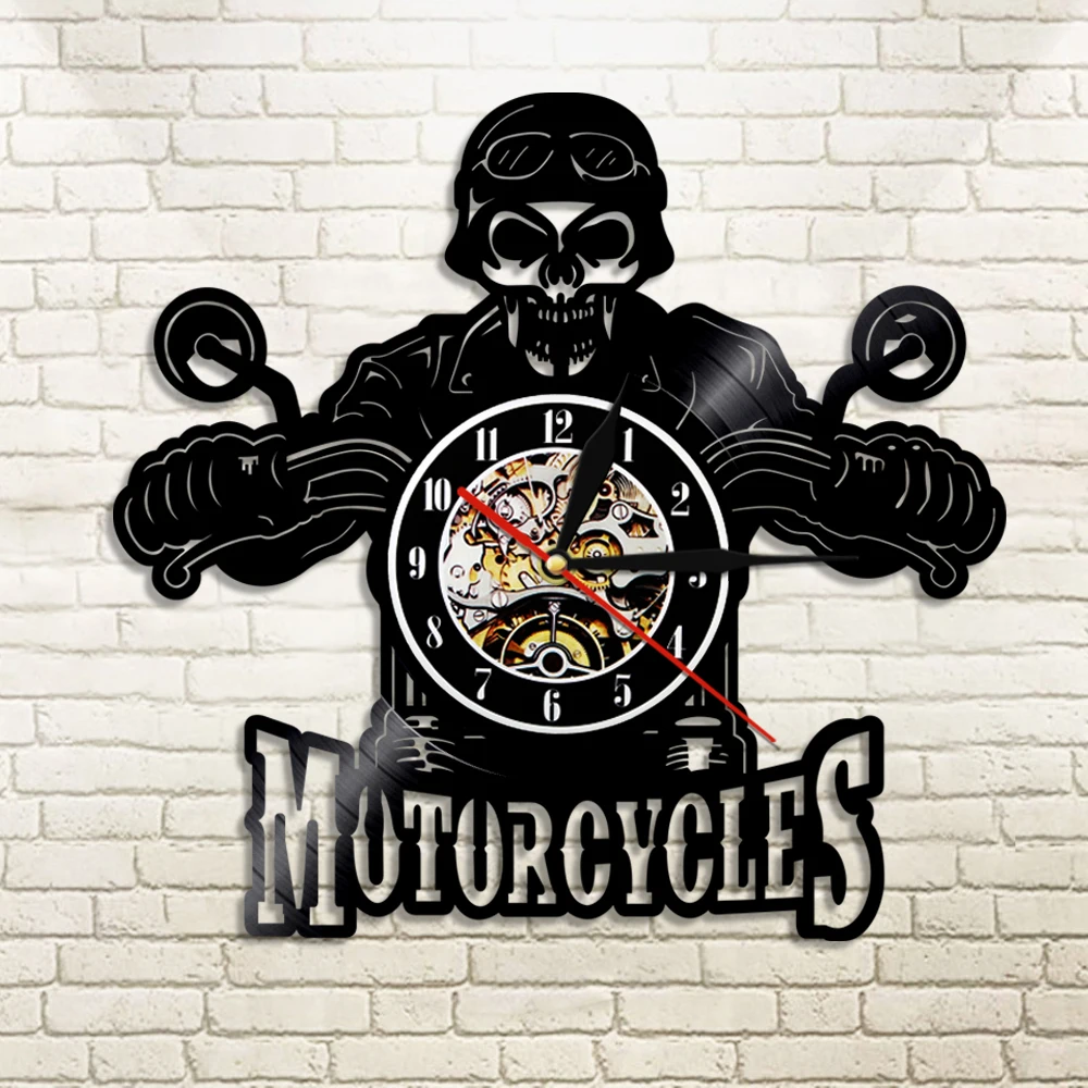Настенные часы с черепом в шлеме, для гонщиков, мотоциклов, велосипедистов, Виниловая пластинка, домашние украшения для Хэллоуина