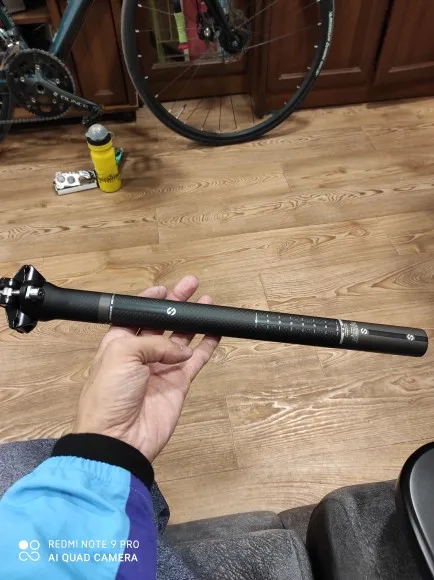 Всем привет. Подседел выглядит прекрасно, внешним видом доволен. Есть нюанс, из-за лака внешний диаметр 32 мм, в раму не зайдёт, даже не пытайтесь. Лак снял 0,5 по кругу 140 наждачкой, под краской прекраснейший карбон. Дополню отзыв после тестирования на ходу.