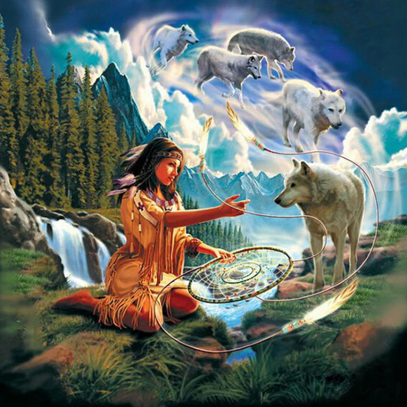 100% Полный 5D diy Daimond живопись 3D алмазов картина Полный Круглый Стразы diamant живопись вышивка "Индиана девушка и волк"