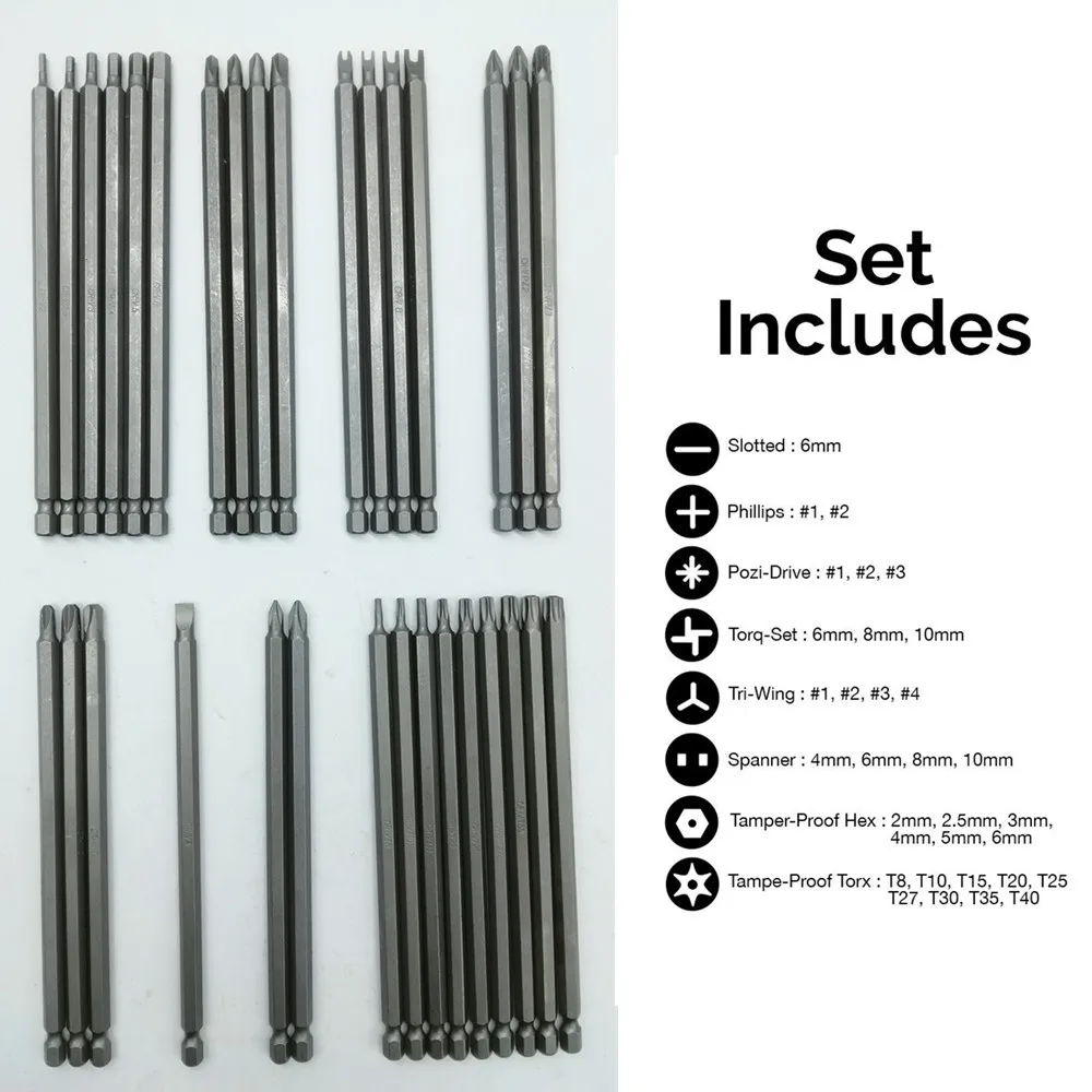 Набор сверхдлинных защитных бит, 32 шт., 6 дюймов, 150 мм, длина, 14 дюйма, хвостовик, Tamperproof, звездообразный цвет