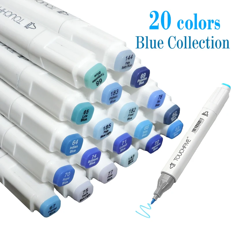 Маркеры TouchFIVE, 20 цветов, спиртовые маркеры, набор синих цветов, океан, небо, модные Канцтовары, ручка для школы, эскизные маркеры