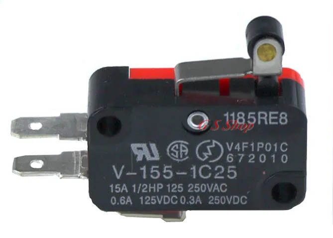 1 шт. V-155-1C25 15A микро концевой выключатель, кнопка SPDT мгновенного действия защелкивающийся переключатель, дорожный переключатель,