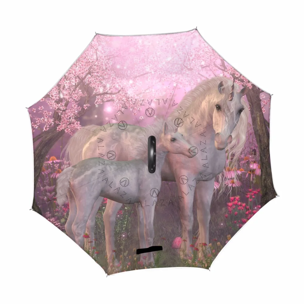 Двухслойный зонтик с обратной стороны открытыйзакрытый в узком пространстве креативный ветрозащитный зонт с единорогом для автомобиля для женщин и мужчин