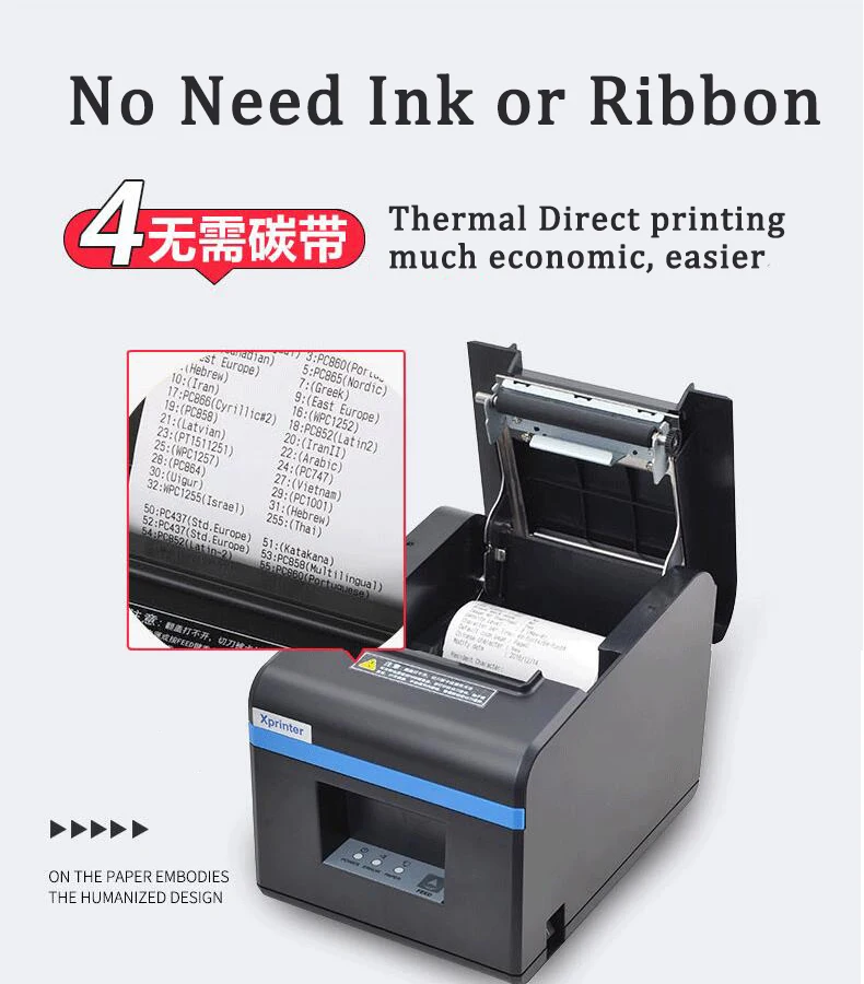 Термопринтер для печати чеков, 80 мм, для кухни, ресторана, POS-принтер с функцией автоматической резки, стильный внешний вид