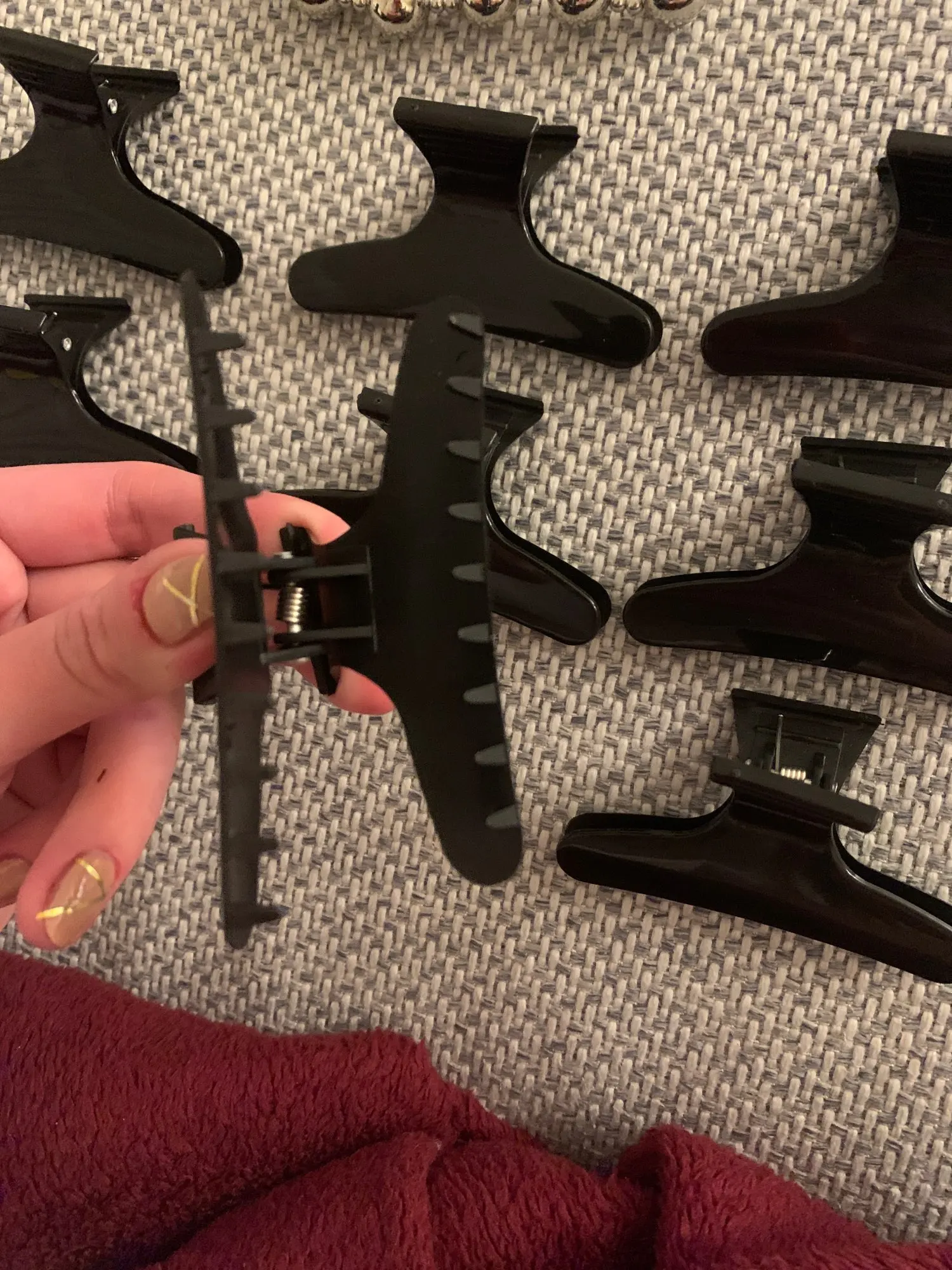 крабы не плохие, но есть несколько важных ньюансов: 1) у них маленькие зубчики и прям прическу они держать не способны. 2) они сделаны не из жёсткого пластика как все крабы, а нечто похожее на пластиковую бутылку только потолще, пружинят немного. Я брала чтоб фиксировать пряди во время завивки - думаю это максимум на что они способны. Размер соответствует заявленному. Пришло через месяц в совместной посылке.
