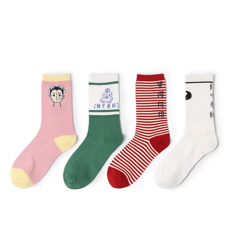 Новые мужские и женские хлопковые носки Harajuku, модные японские Популярные забавные носки с иллюстрациями для пар