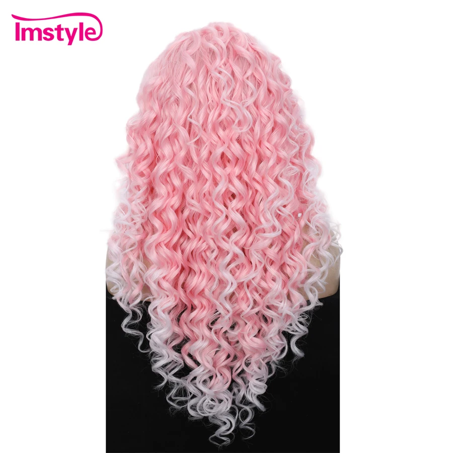 Imstyle кудрявые розовые парики, синтетические кружевные передние парики для женщин, двухцветные длинные волосы, термостойкие волосы, без клея, парик для косплея